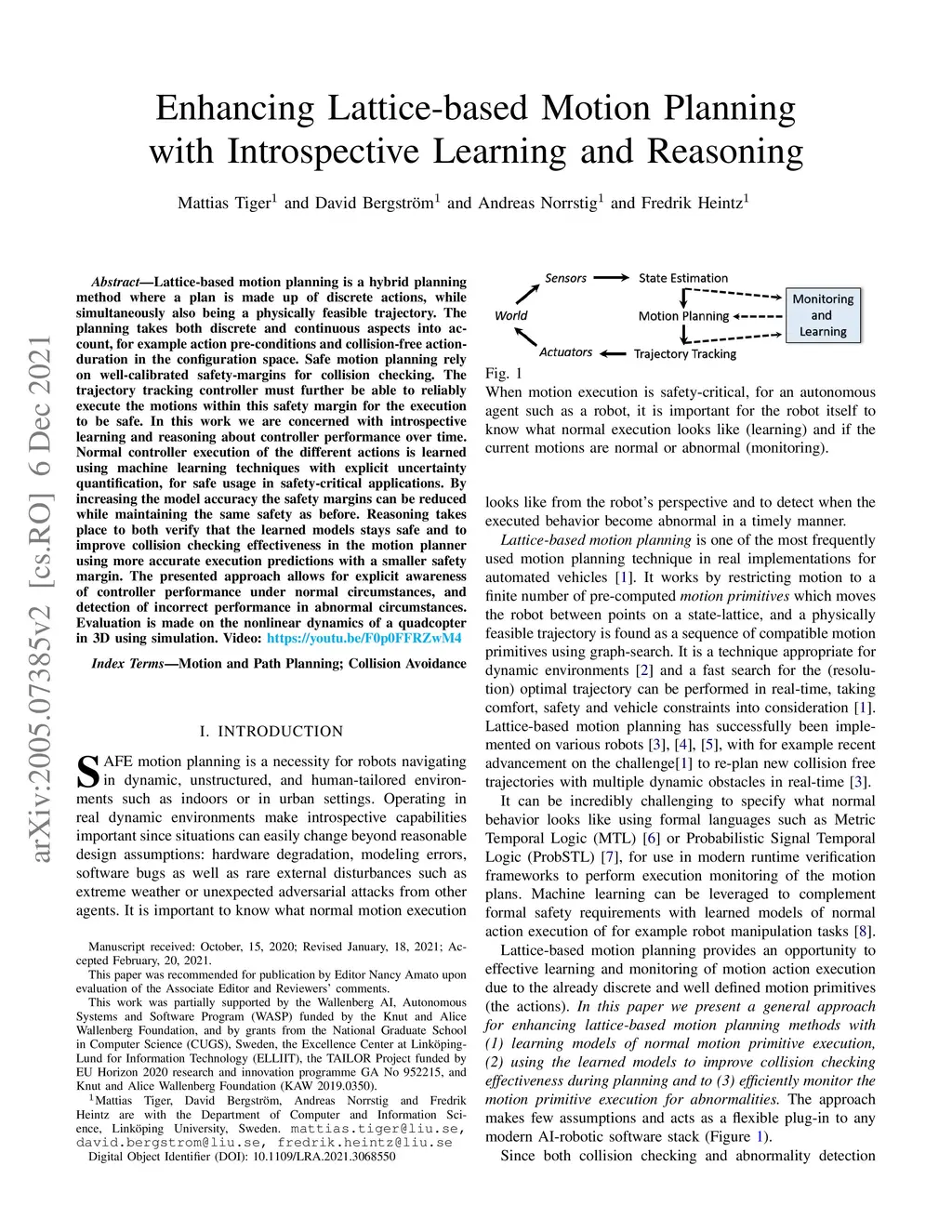 Lattice-based motion planning is a hybrid planning method where a plan made up of discrete actions simultaneously is a physically feasible trajectory. The planning takes both discrete and continuous aspects into account, for example action pre-conditions and collision-free action-duration in the configuration space. Safe motion planing rely on well-calibrated safety-margins for collision checking. The trajectory tracking controller must further be able to reliably execute the motions within this safety margin for the execution to be safe. In this work we are concerned with introspective learning and reasoning about controller performance over time. Normal controller execution of the different actions is learned using reliable and uncertainty-aware machine learning techniques. By correcting for execution bias we manage to substantially reduce the safety margin of motion actions. Reasoning takes place to both verify that the learned models stays safe and to improve collision checking effectiveness in the motion planner by the use of more accurate execution predictions with a smaller safety margin. The presented approach allows for explicit awareness of controller performance under normal circumstances, and timely detection of incorrect performance in abnormal circumstances. Evaluation is made on the nonlinear dynamics of a quadcopter in 3D using simulation. Video: https://youtu.be/STmZduvSUMM