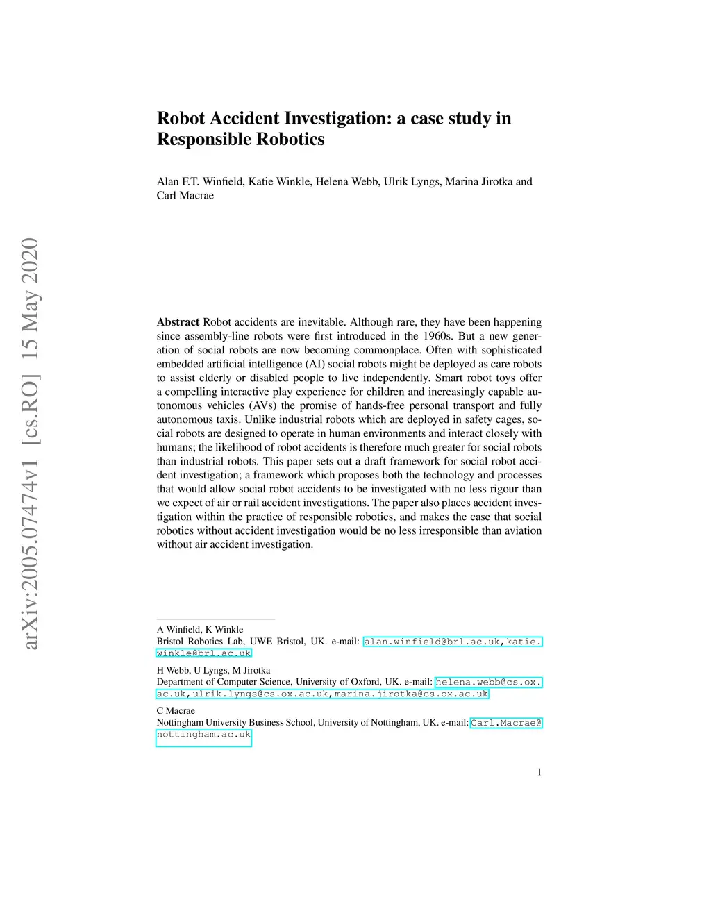 Robot Accident Investigation: a case study in Responsible Robotics