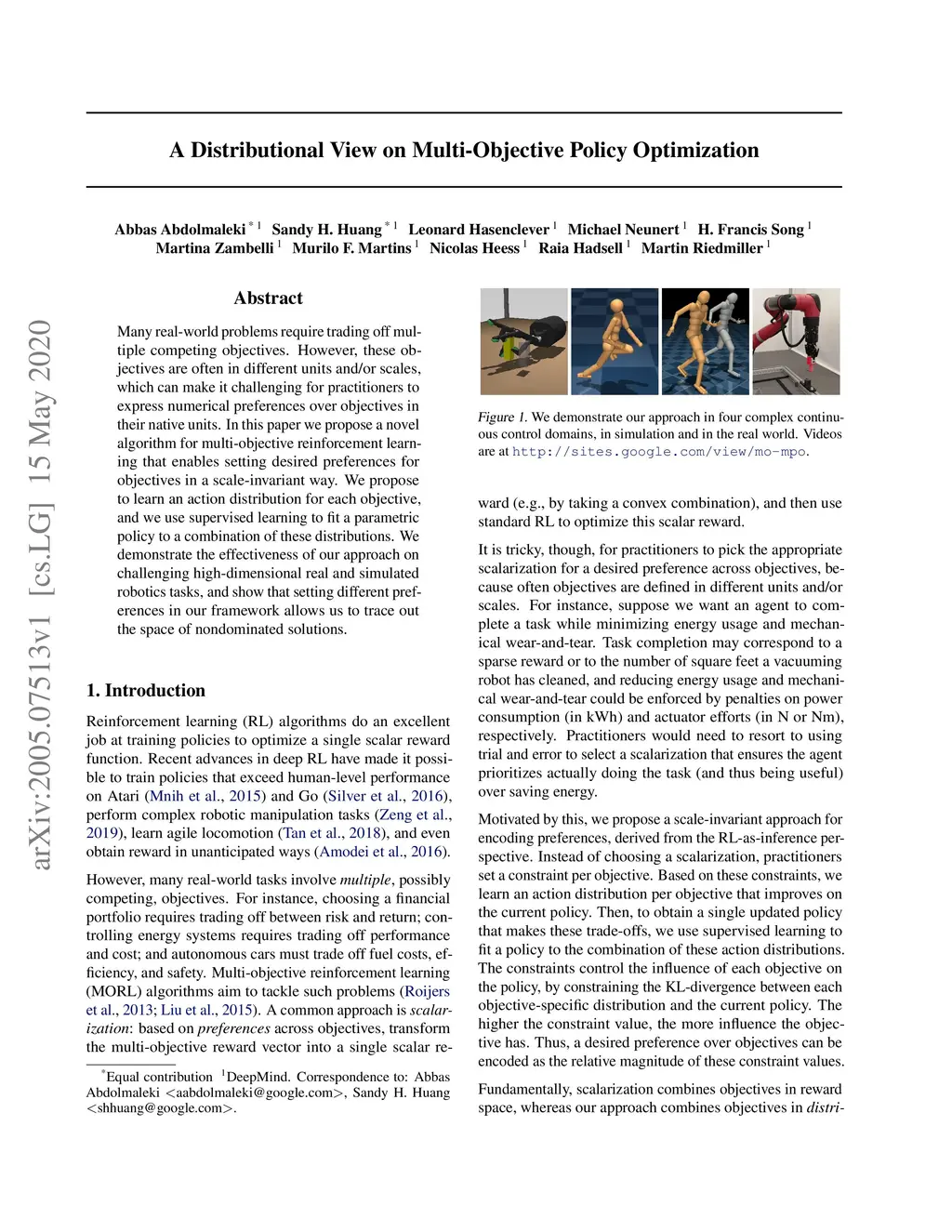 A Distributional View on Multi-Objective Policy Optimization