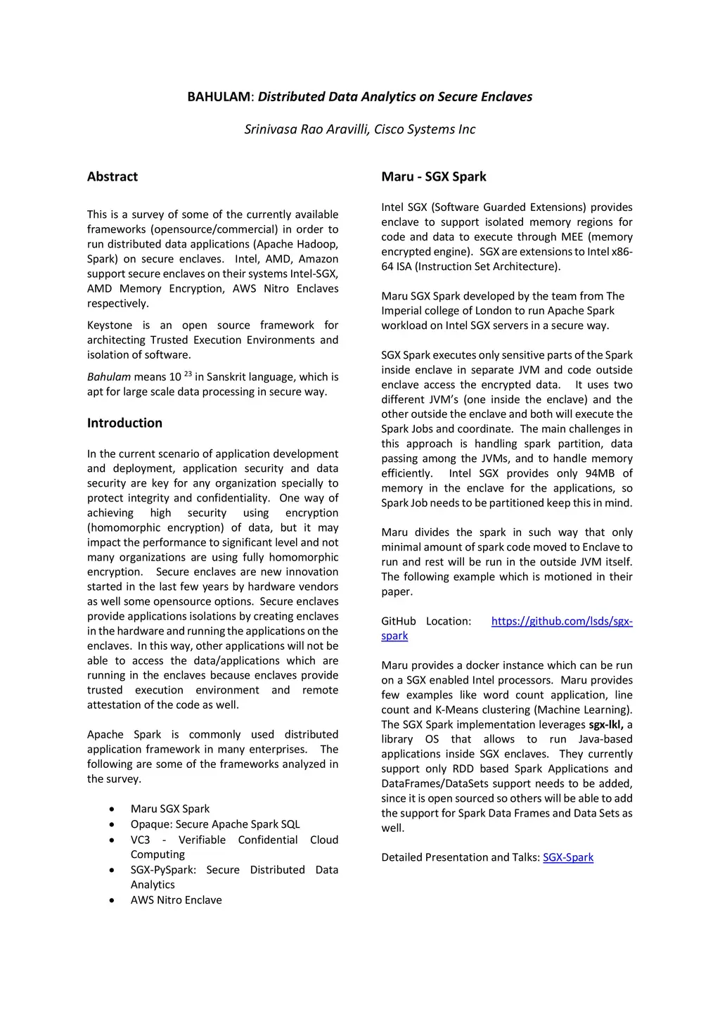 BAHULAM: Distributed Data Analytics on Secure Enclaves