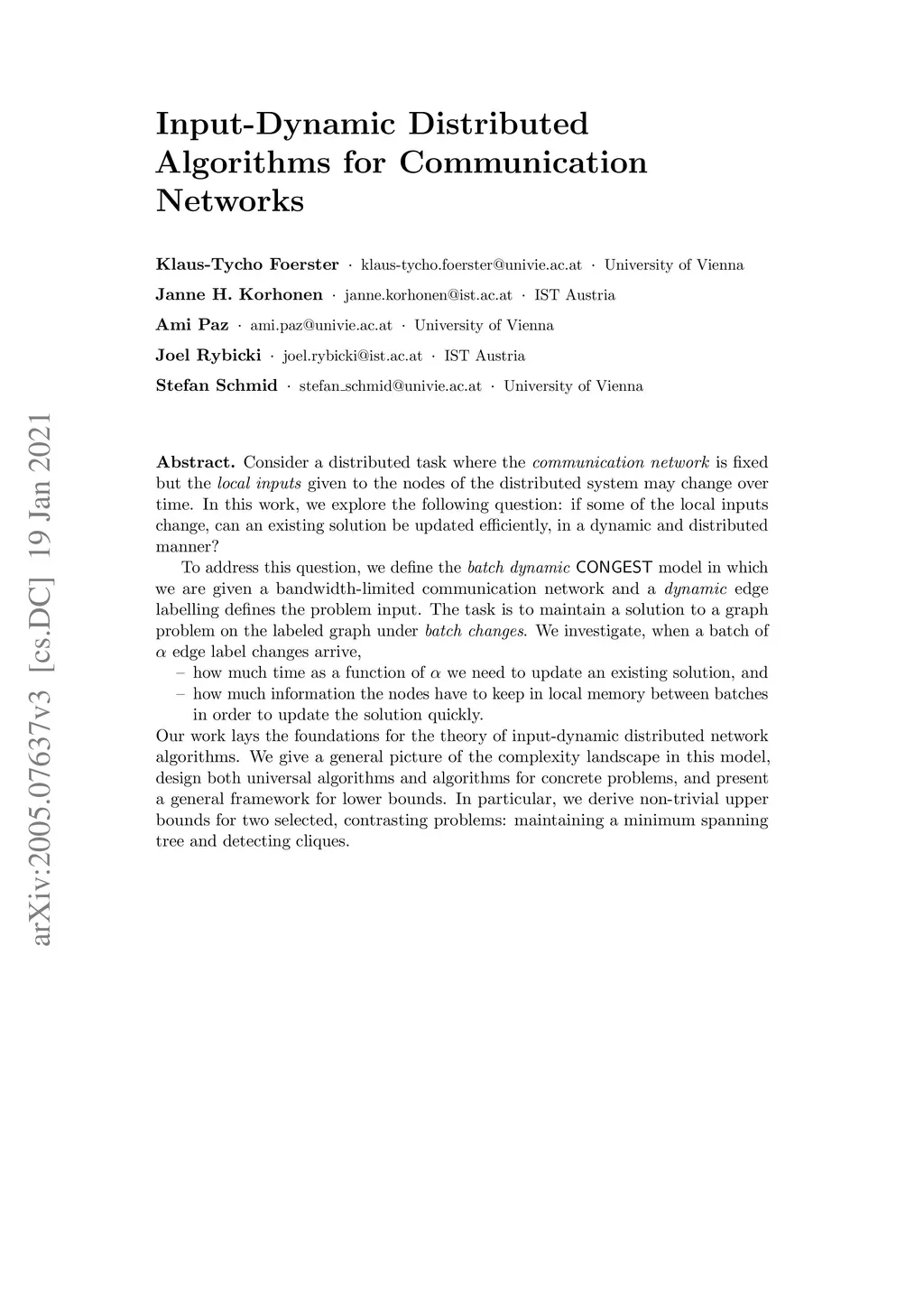 Input-dynamic distributed graph algorithms for congested networks
