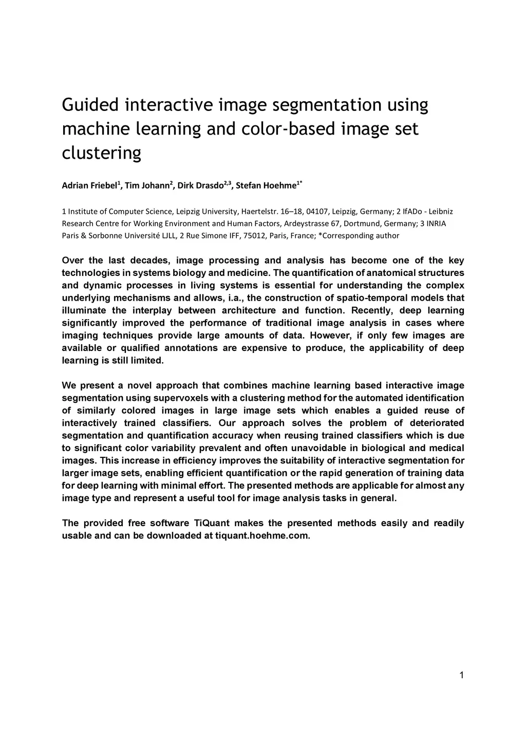 We present a novel approach that combines machine learning based interactive image segmentation using supervoxels with a clustering method for the automated identification of similarly colored images in large data sets which enables a guided reuse of classifiers. Our approach solves the problem of significant color variability prevalent and often unavoidable in biological and medical images which typically leads to deteriorated segmentation and quantification accuracy thereby greatly reducing the necessary training effort. This increase in efficiency facilitates the quantification of much larger numbers of images thereby enabling interactive image analysis for recent new technological advances in high-throughput imaging. The presented methods are applicable for almost any image type and represent a useful tool for image analysis tasks in general.