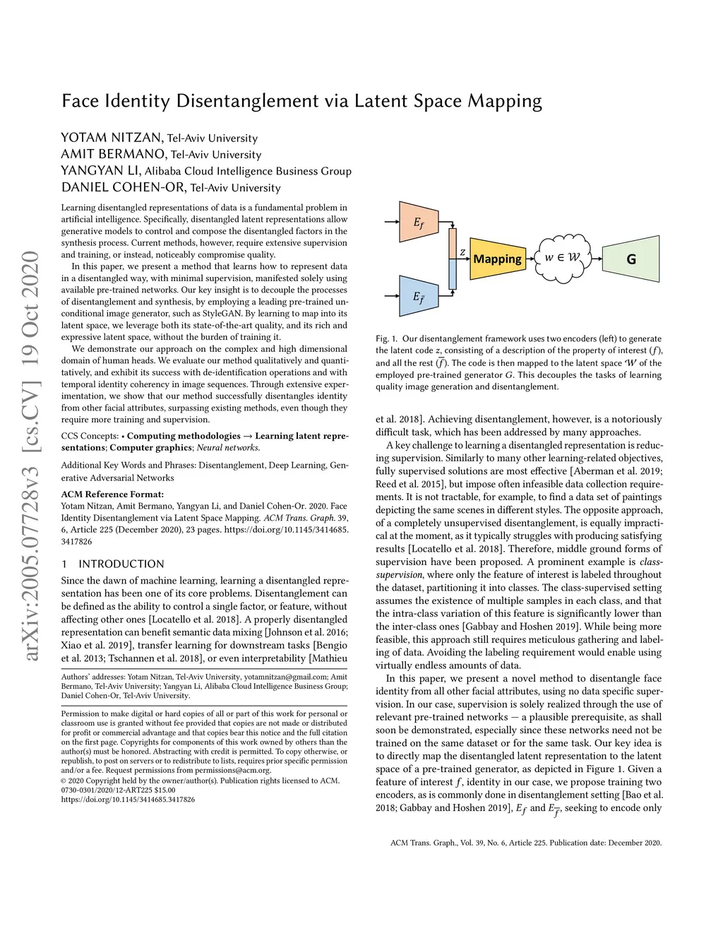 Face Identity Disentanglement via Latent Space Mapping