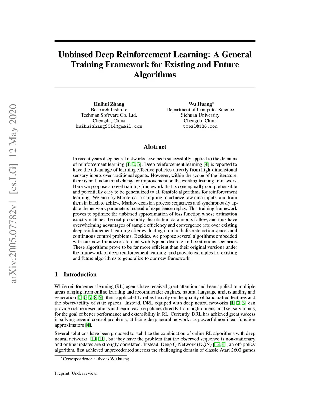 Unbiased Deep Reinforcement Learning: A General Training Framework for