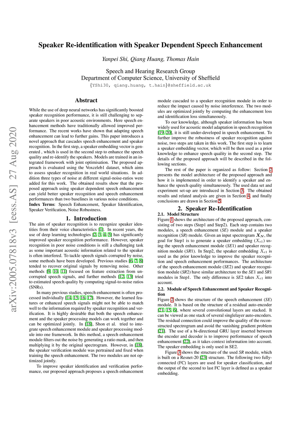 Speaker Re-identification with Speaker Dependent Speech Enhancement