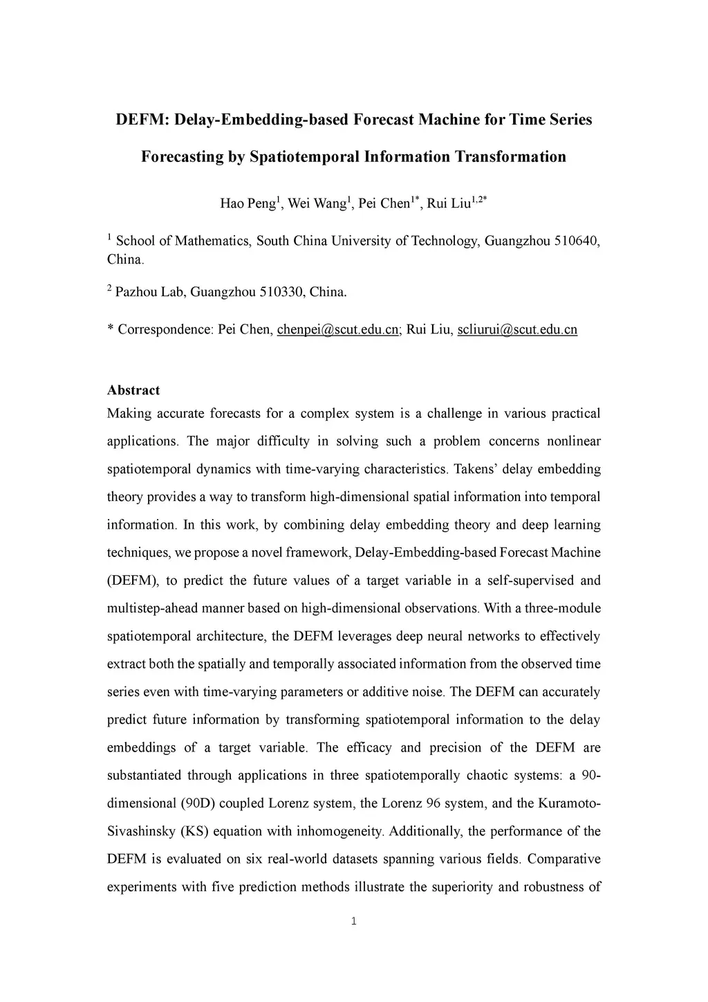 DEFM: Delay E mbedding based Forecast Machine for Time Series