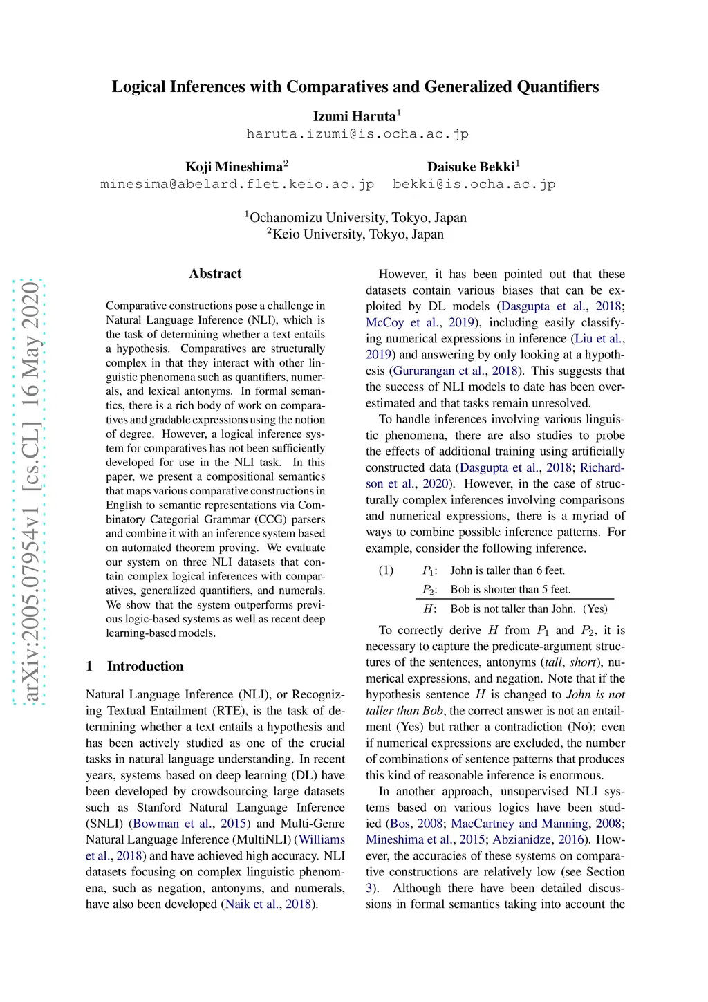 Logical Inferences with Comparatives and Generalized Quantifiers