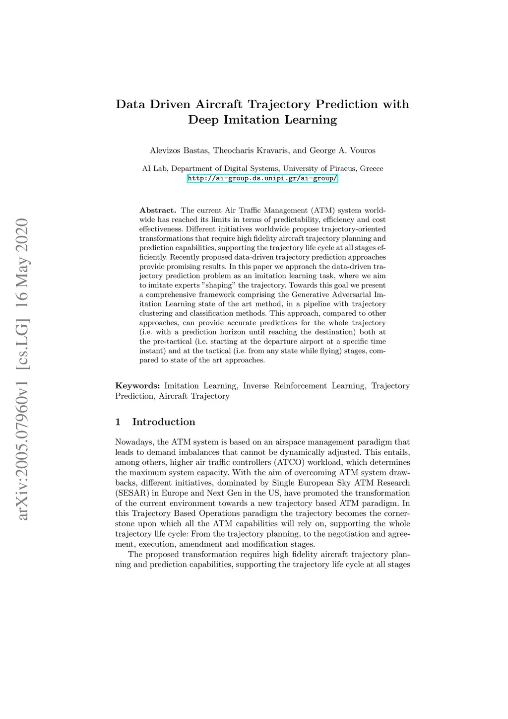 Data Driven Aircraft Trajectory Prediction with Deep Imitation Learning