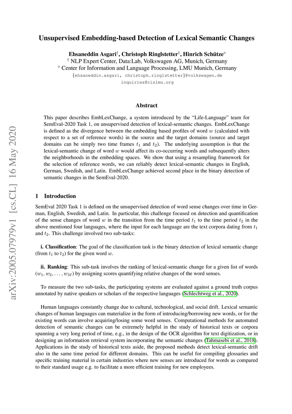 Unsupervised Embedding-based Detection of Lexical Semantic Changes