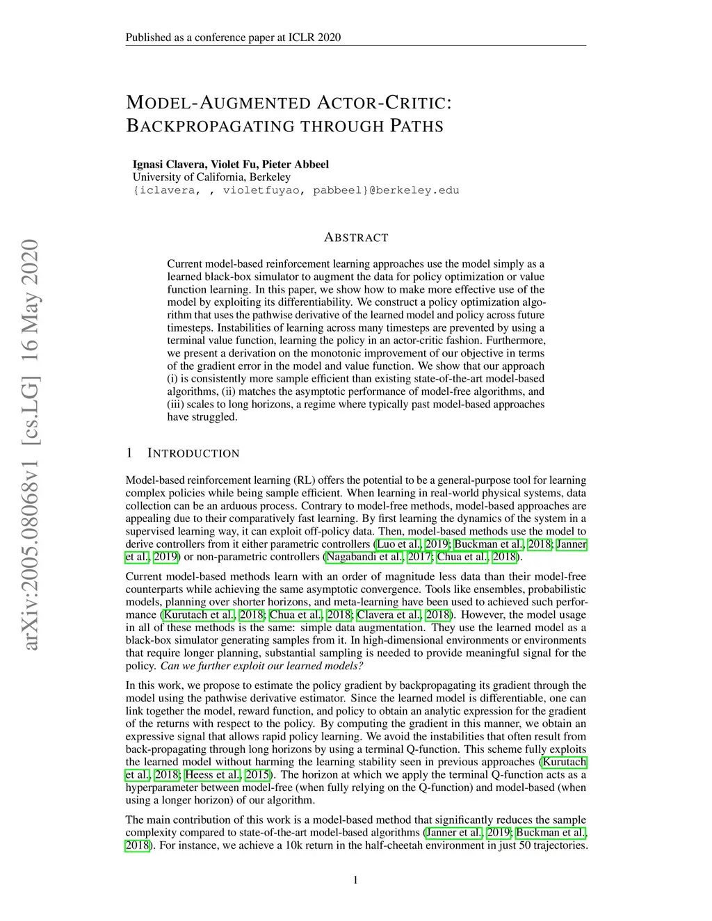 Model-Augmented Actor-Critic: Backpropagating through Paths