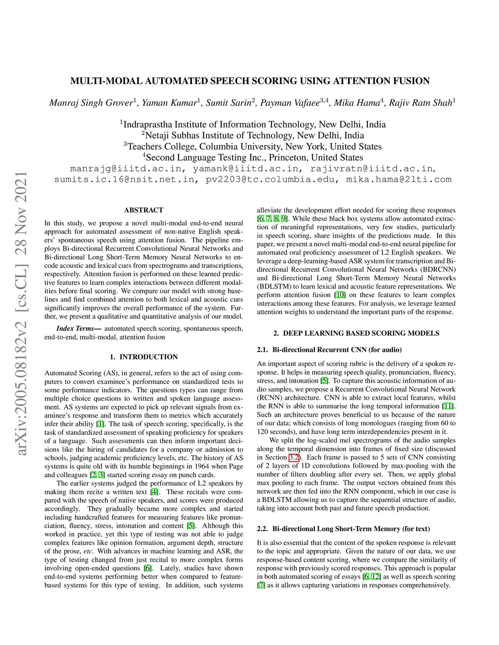 Multi-modal Automated Speech Scoring using Attention Fusion