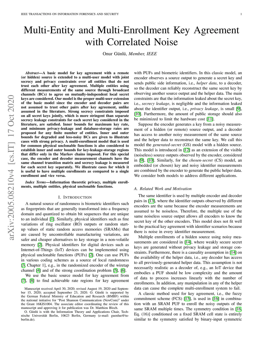 Multi-Entity and Multi-Enrollment Key Agreement with Correlated Noise