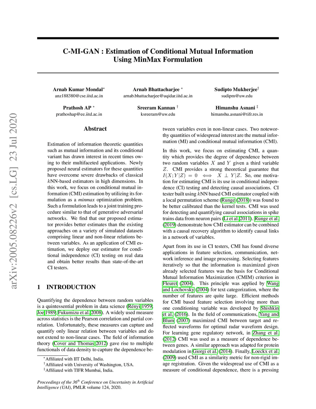 C-MI-GAN : Estimation of Conditional Mutual Information using MinMax