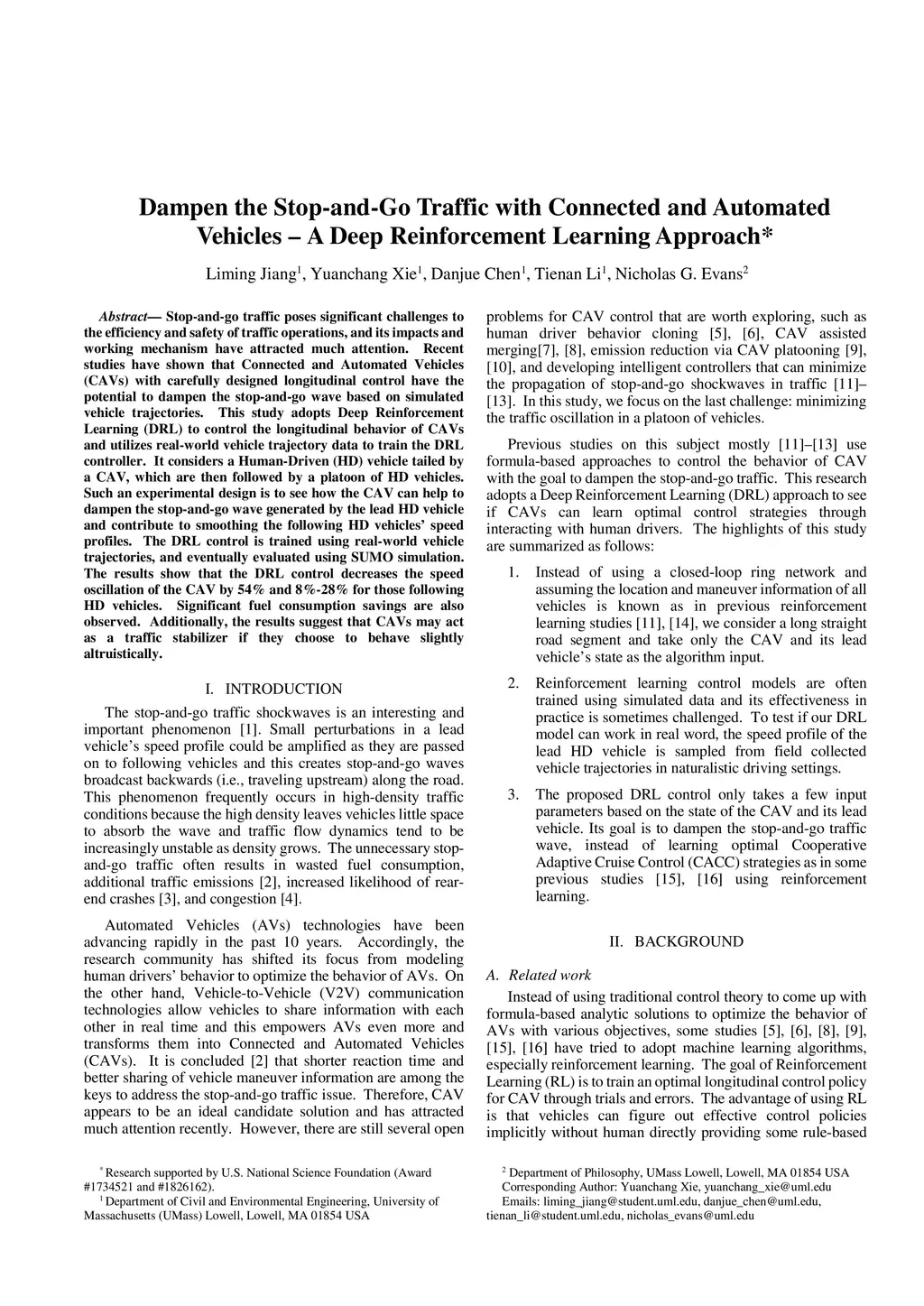 Stop-and-go traffic poses many challenges to tranportation system, but its formation and mechanism are still under exploration.however, it has been proved that by introducing Connected Automated Vehicles(CAVs) with carefully designed controllers one could dampen the stop-and-go waves in the vehicle fleet. Instead of using analytical model, this study adopts reinforcement learning to control the behavior of CAV and put a single CAV at the 2nd position of a vehicle fleet with the purpose to dampen the speed oscillation from the fleet leader and help following human drivers adopt more smooth driving behavior. The result show that our controller could decrease the spped oscillation of the CAV by 54% and 8%-28% for those following human-driven vehicles. Significant fuel consumption savings are also observed. Additionally, the result suggest that CAVs may act as a traffic stabilizer if they choose to behave slightly altruistically.