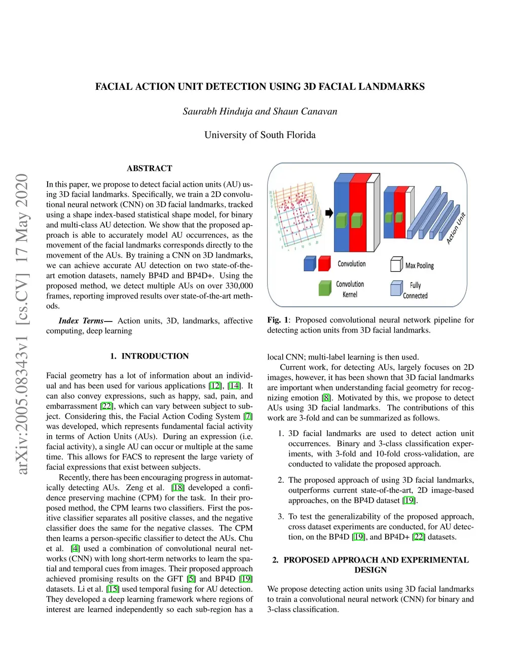 Facial Action Unit Detection using 3D Facial Landmarks