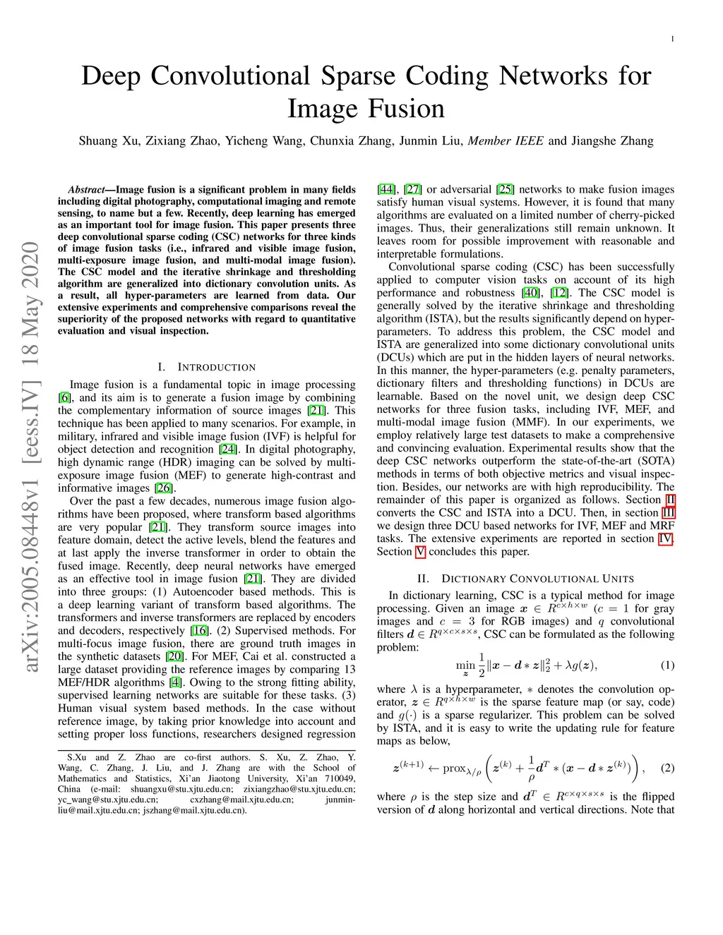 Deep Convolutional Sparse Coding Networks for Image Fusion