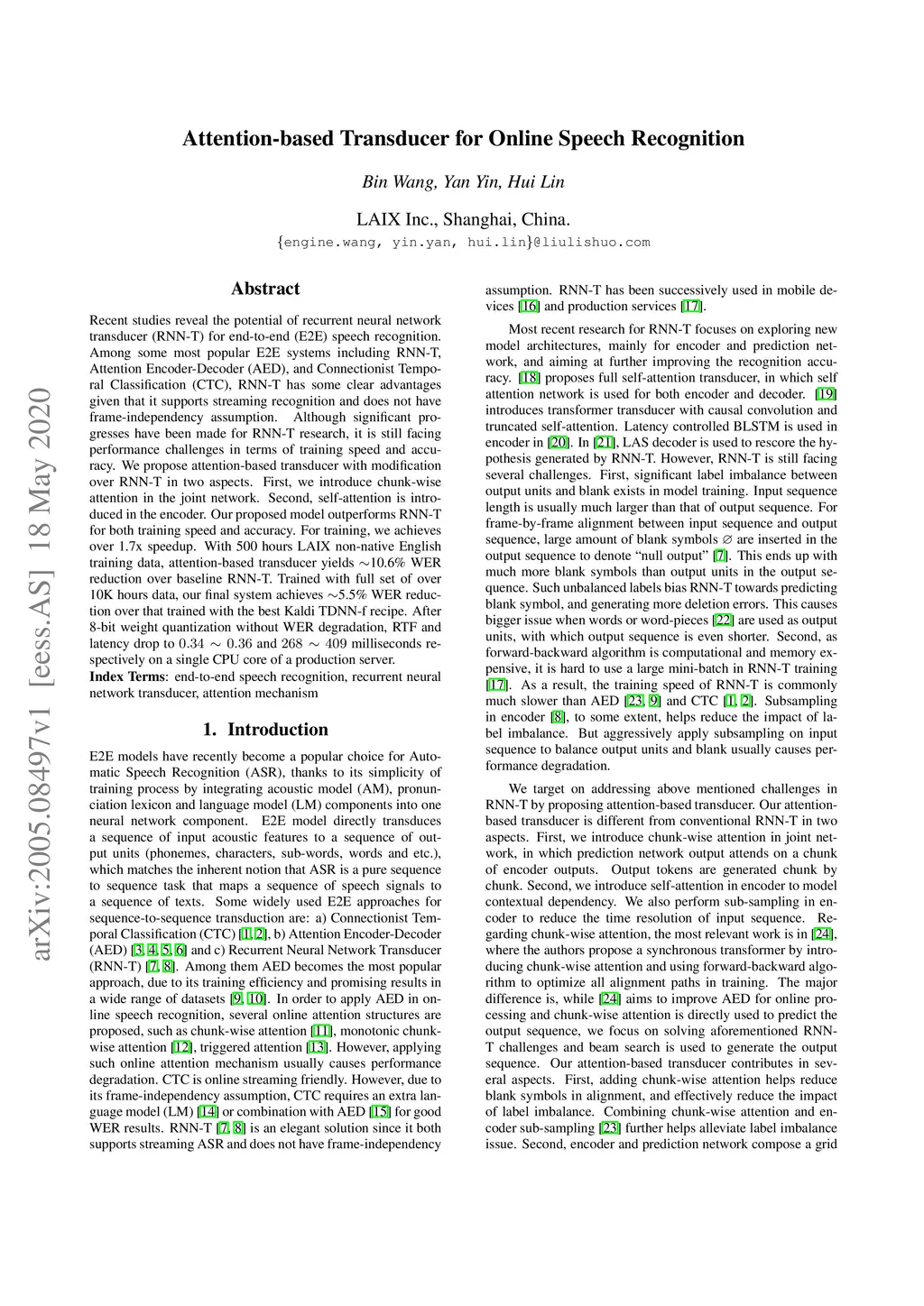 Attention-based Transducer for Online Speech Recognition