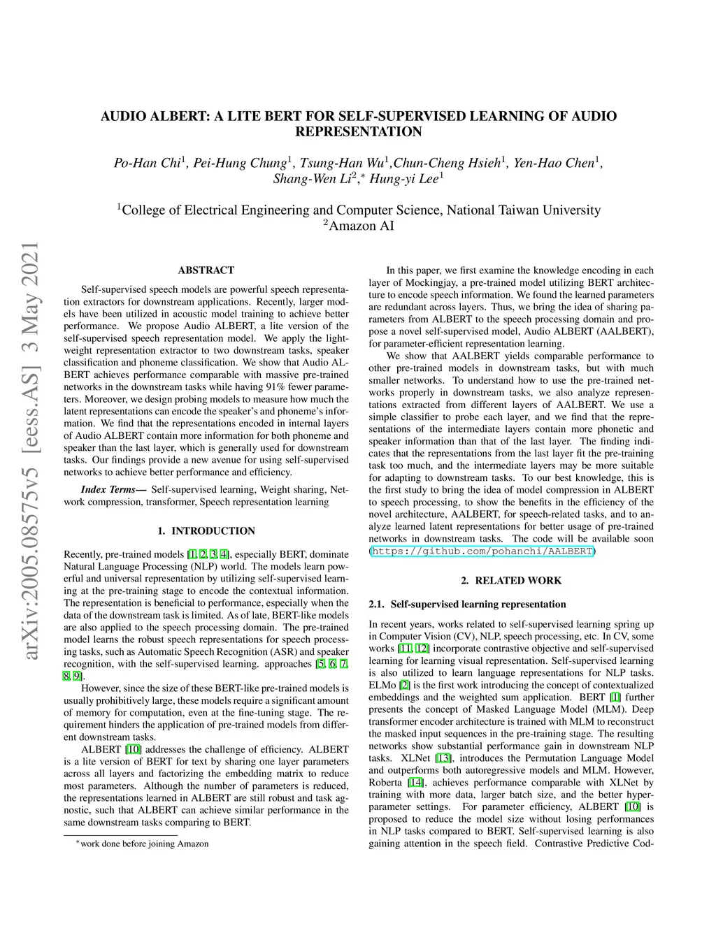 Audio ALBERT: A Lite BERT for Self-supervised Learning of Audio