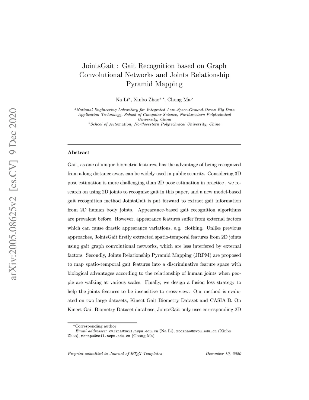 JointsGait:A model-based Gait Recognition Method based on Gait Graph