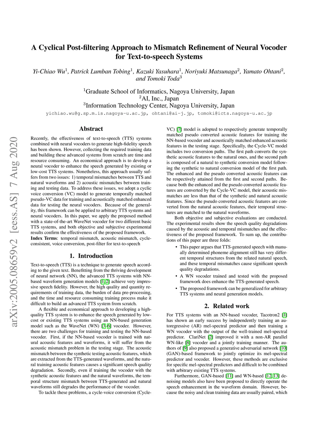 Recently, the effectiveness of text-to-speech (TTS) systems combined with neural vocoders to generate high-fidelity speech has been shown. However, collecting the required training data and building these advanced systems from scratch are time and resource consuming. An economical approach is to develop a neural vocoder to enhance the speech generated by existing or low-cost TTS systems. Nonetheless, this approach usually suffers from two issues: 1) temporal mismatches between TTS and natural waveforms and 2) acoustic mismatches between training and testing data. To address these issues, we adopt a cyclic voice conversion (VC) model to generate temporally matched pseudo-VC data for training and acoustically matched enhanced data for testing the neural vocoders. Because of the generality, this framework can be applied to arbitrary TTS systems and neural vocoders. In this paper, we apply the proposed method with a state-of-the-art WaveNet vocoder for two different basic TTS systems, and both objective and subjective experimental results confirm the effectiveness of the proposed framework.
