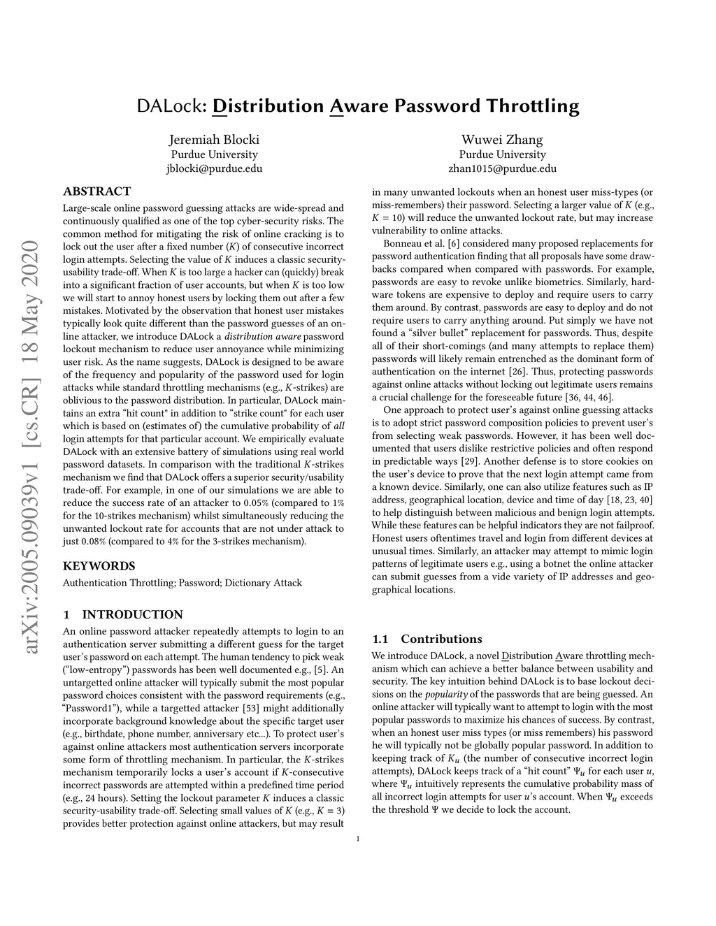 Large-scale online password guessing attacks are wide-spread and continuously qualified as one of the top cyber-security risks. The common method for mitigating the risk of online cracking is to lock out the user after a fixed number () of consecutive incorrect login attempts. Selecting the value of induces a classic security-usability trade-off. When is too large a hacker can (quickly) break into a significant fraction of user accounts, but when is too low we will start to annoy honest users by locking them out after a few mistakes. Motivated by the observation that honest user mistakes typically look quite different than the password guesses of an online attacker, we introduce DALock a {\em distribution aware} password lockout mechanism to reduce user annoyance while minimizing user risk. As the name suggests, DALock is designed to be aware of the frequency and popularity of the password used for login attacks while standard throttling mechanisms (e.g., -strikes) are oblivious to the password distribution. In particular, DALock maintains an extra "hit count" in addition to "strike count" for each user which is based on (estimates of) the cumulative probability of {\em all} login attempts for that particular account. We empirically evaluate DALock with an extensive battery of simulations using real world password datasets. In comparison with the traditional -strikes mechanism we find that DALock offers a superior security/usability trade-off. For example, in one of our simulations we are able to reduce the success rate of an attacker to (compared to for the -strikes mechanism) whilst simultaneously reducing the unwanted lockout rate for accounts that are not under attack to just (compared to for the -strikes mechanism).