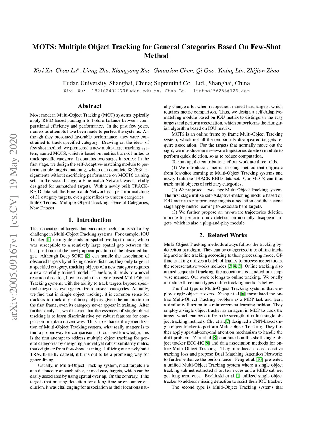 MOTS: Multiple Object Tracking for General Categories Based On Few-Shot