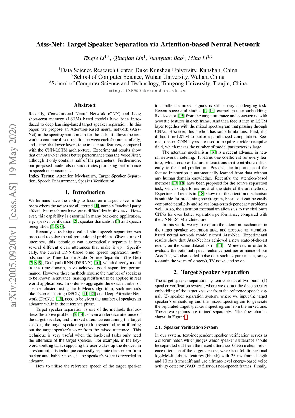 Atss-Net: Target Speaker Separation via Attention-based Neural Network