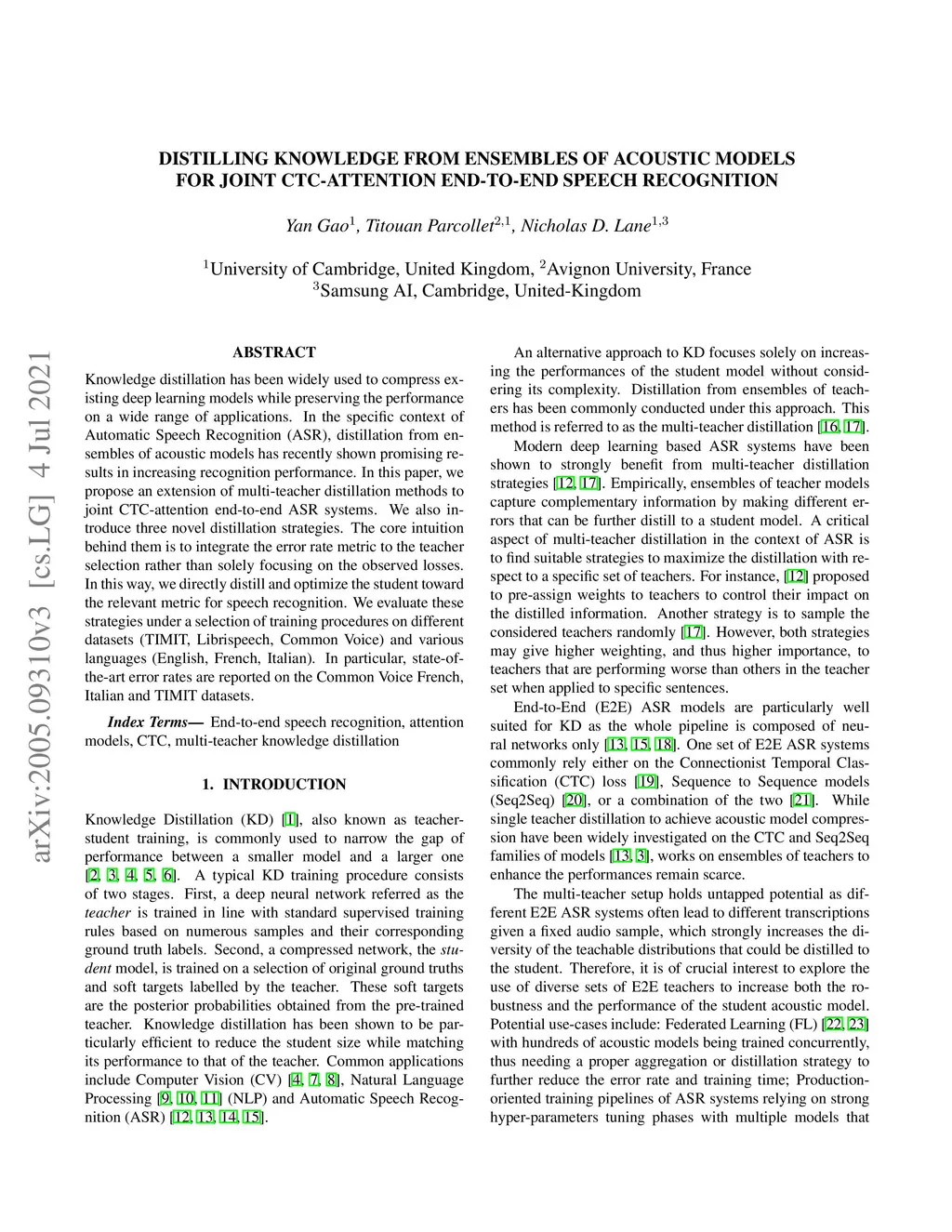 Knowledge distillation has been widely used to compress existing deep learning models while preserving the performance on a wide range of applications. In the specific context of Automatic Speech Recognition (ASR), distillation from ensembles of acoustic models has recently shown promising results in increasing recognition performance. In this paper, we propose an extension of multi-teacher distillation methods to joint ctc-atention end-to-end ASR systems. We also introduce two novel distillation strategies. The core intuition behind both is to integrate the error rate metric to the teacher selection rather than solely focusing on the observed losses. This way, we directly distillate and optimize the student toward the relevant metric for speech recognition. We evaluated these strategies under a selection of training procedures on the TIMIT phoneme recognition task and observed promising error rate for these strategies compared to a common baseline. Indeed, the best obtained phoneme error rate of 16.4% represents a state-of-the-art score for end-to-end ASR systems.