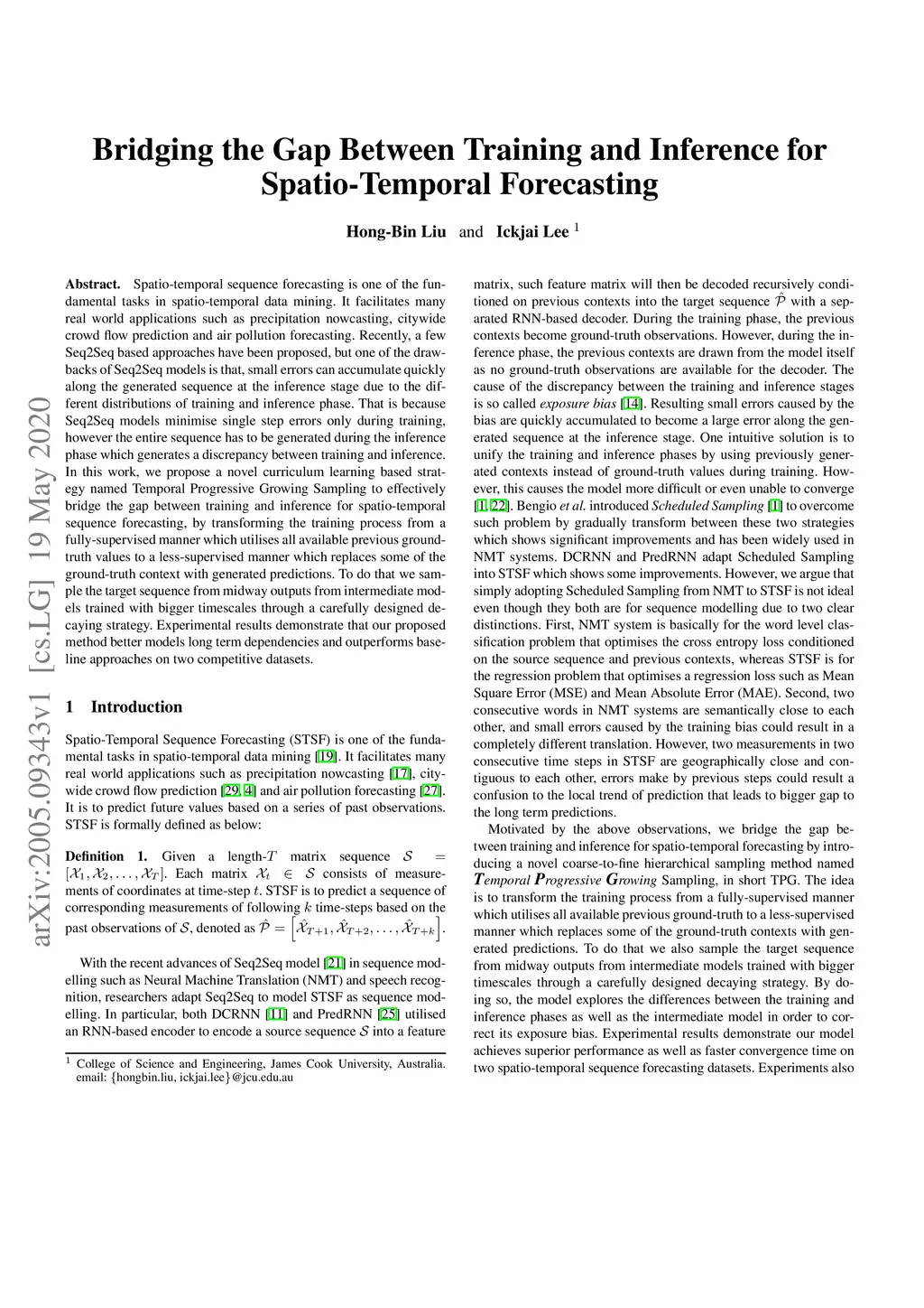 Bridging the Gap Between Training and Inference for Spatio-Temporal