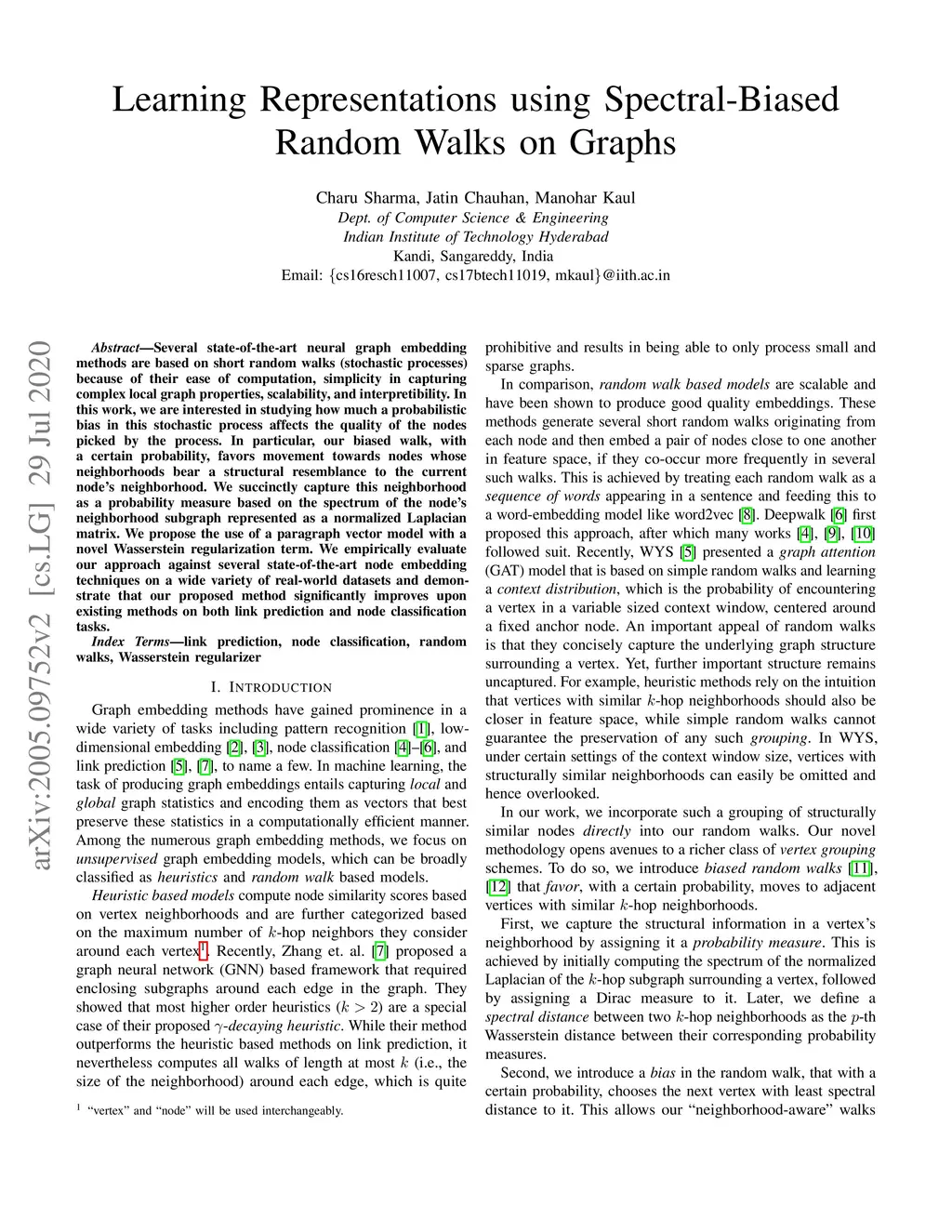 Learning Representations using Spectral-Biased Random Walks on Graphs