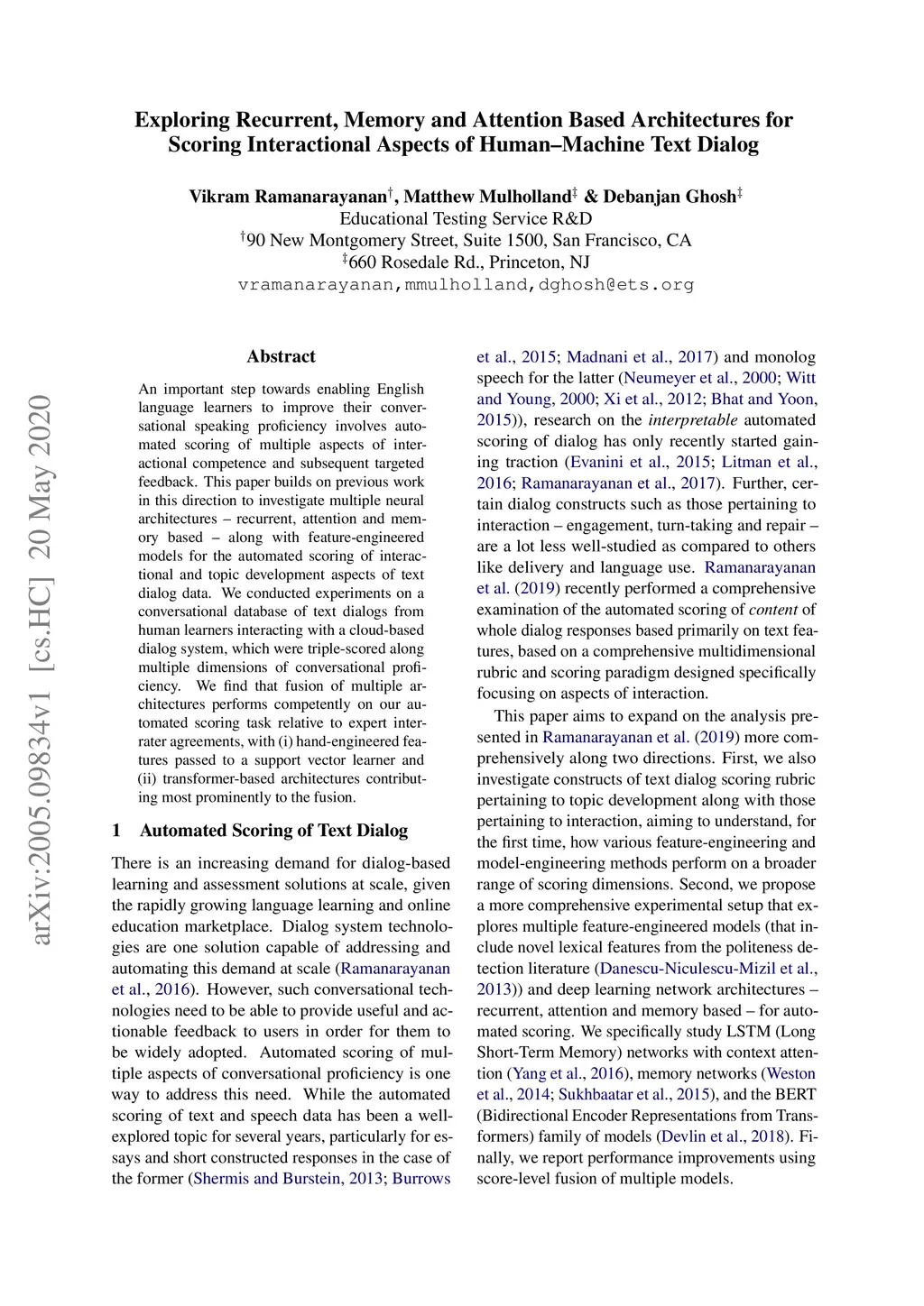 Scoring Interactional Aspects of Human-Machine Text Dialog
