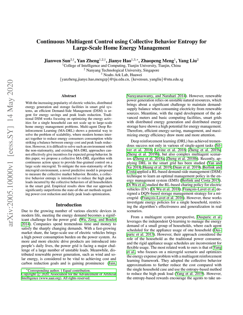 With the increasing popularity of electric vehicles, distributed energy generation and storage facilities in smart grid systems, an efficient Demand-Side Management (DSM) is urgent for energy savings and peak loads reduction. Traditional DSM works focusing on optimizing the energy activities for a single household can not scale up to large-scale home energy management problems. Multi-agent Deep Reinforcement Learning (MA-DRL) shows a potential way to solve the problem of scalability, where modern homes interact together to reduce energy consumers consumption while striking a balance between energy cost and peak loads reduction. However, it is difficult to solve such an environment with the non-stationarity, and existing MA-DRL approaches cannot effectively give incentives for expected group behavior. In this paper, we propose a collective MA-DRL algorithm with continuous action space to provide fine-grained control on a large scale microgrid. To mitigate the non-stationarity of the microgrid environment, a novel predictive model is proposed to measure the collective market behavior. Besides, a collective behavior entropy is introduced to reduce the high peak loads incurred by the collective behaviors of all householders in the smart grid. Empirical results show that our approach significantly outperforms the state-of-the-art methods regarding power cost reduction and daily peak loads optimization.
