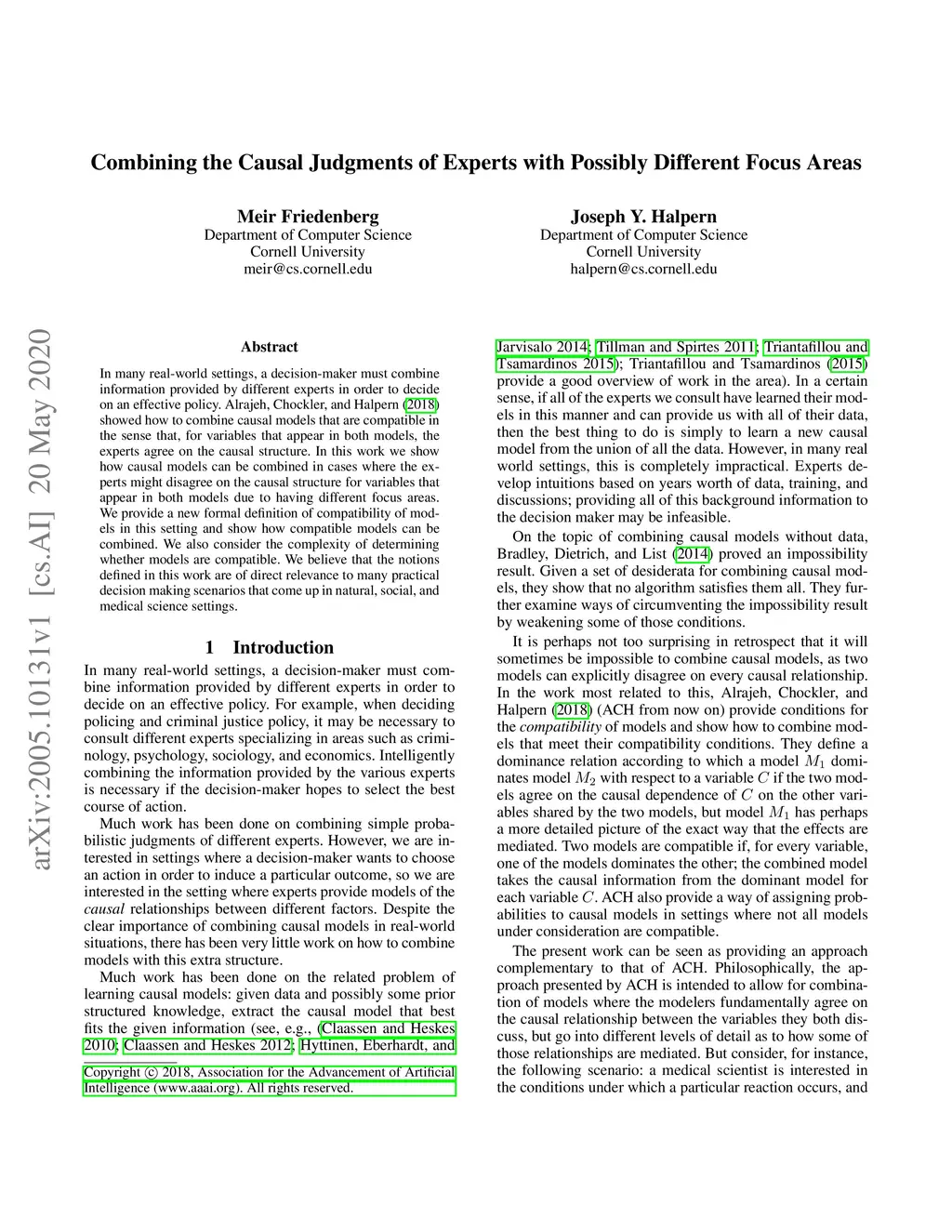 In many real-world settings, a decision-maker must combine information provided by different experts in order to decide on an effective policy. Alrajeh, Chockler, and Halpern [2018] showed how to combine causal models that are compatible in the sense that, for variables that appear in both models, the experts agree on the causal structure. In this work we show how causal models can be combined in cases where the experts might disagree on the causal structure for variables that appear in both models due to having different focus areas. We provide a new formal definition of compatibility of models in this setting and show how compatible models can be combined. We also consider the complexity of determining whether models are compatible. We believe that the notions defined in this work are of direct relevance to many practical decision making scenarios that come up in natural, social, and medical science settings.