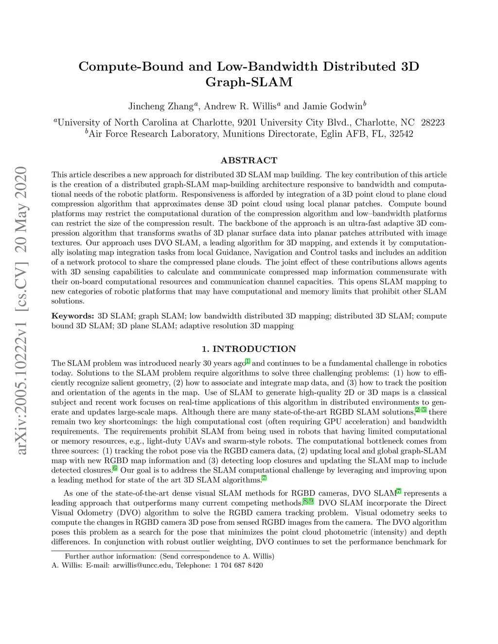 This article describes a new approach for distributed 3D SLAM map building. The key contribution of this article is the creation of a distributed graph-SLAM map-building architecture responsive to bandwidth and computational needs of the robotic platform. Responsiveness is afforded by the integration of a 3D point cloud to plane cloud compression algorithm that approximates dense 3D point cloud using local planar patches. Compute bound platforms may restrict the computational duration of the compression algorithm and low-bandwidth platforms can restrict the size of the compression result. The backbone of the approach is an ultra-fast adaptive 3D compression algorithm that transforms swaths of 3D planar surface data into planar patches attributed with image textures. Our approach uses DVO SLAM, a leading algorithm for 3D mapping, and extends it by computationally isolating map integration tasks from local Guidance, Navigation, and Control tasks and includes an addition of a network protocol to share the compressed plane clouds. The joint effect of these contributions allows agents with 3D sensing capabilities to calculate and communicate compressed map information commensurate with their onboard computational resources and communication channel capacities. This opens SLAM mapping to new categories of robotic platforms that may have computational and memory limits that prohibit other SLAM solutions.