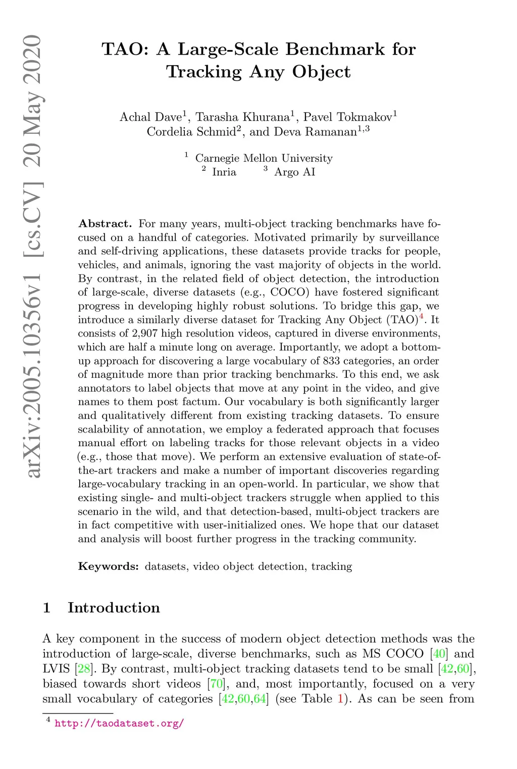 TAO: A Large-Scale Benchmark for Tracking Any Object