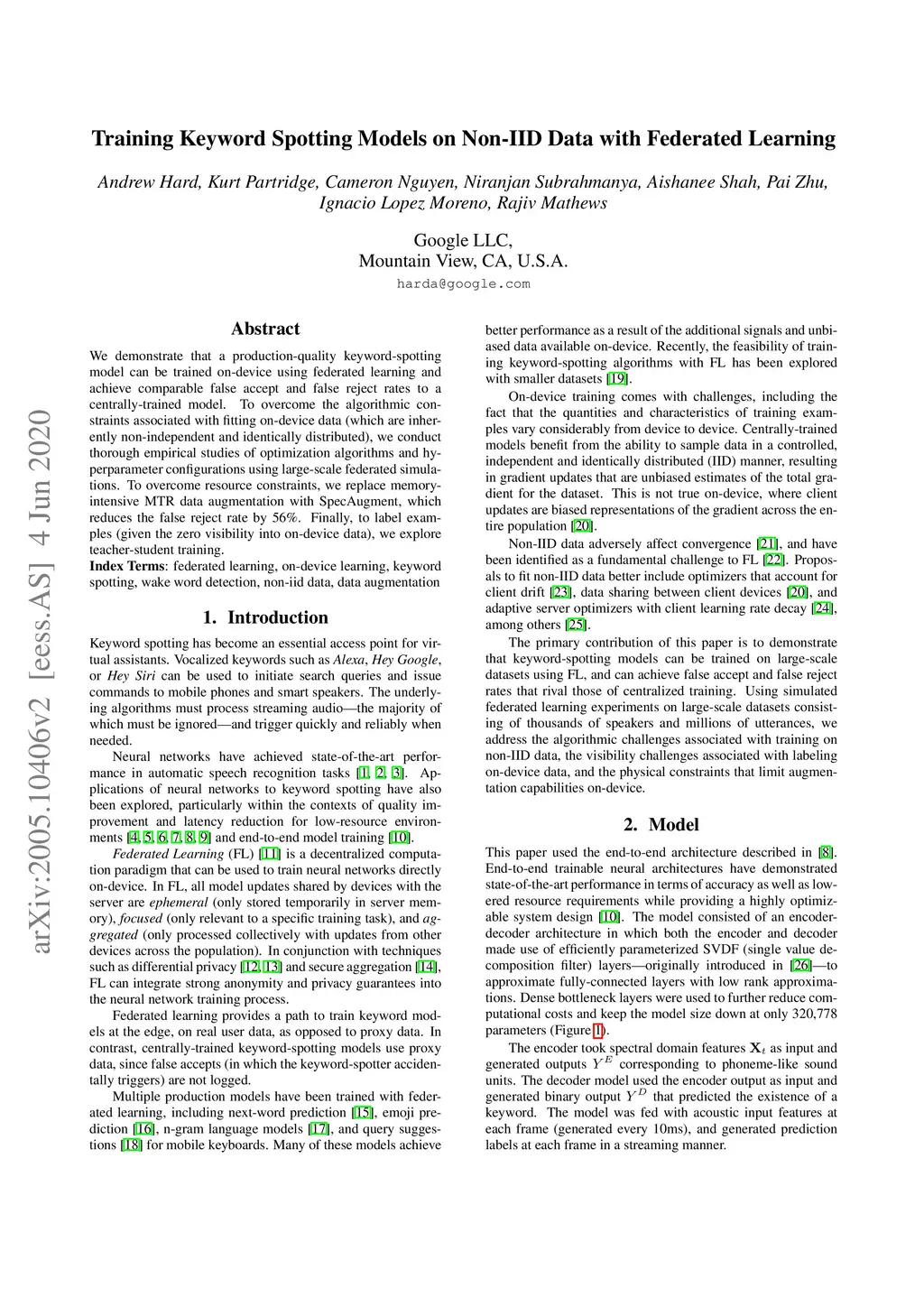 Training Keyword Spotting Models on Non-IID Data with Federated Learning
