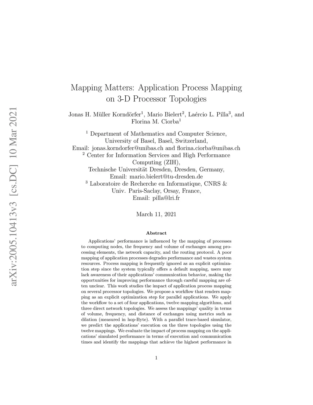 Applications' performance is influenced by the mapping of processes to computing nodes, the frequency and volume of exchanges among processing elements, the network capacity, and the routing protocol. A poor mapping of application processes degrades performance and wastes resources. Process mapping is frequently ignored as an explicit optimization step since the system typically offers a default mapping, users may lack awareness of their applications' communication behavior, and the opportunities for improving performance through mapping are often unclear. This work studies the impact of application process mapping on several processor topologies. We propose a workflow that renders mapping as an explicit optimization step for parallel applications. We apply the workflow to a set of four applications, twelve mapping algorithms, and three direct network topologies. We assess the mappings' quality in terms of volume, frequency, and distance of exchanges using metrics such as dilation (measured in hopByte). With a parallel trace-based simulator, we predict the applications' execution on the three topologies using the twelve mappings. We evaluate the impact of process mapping on the applications' simulated performance in terms of execution and communication times and identify the mappings that achieve the highest performance in both cases. To ensure the correctness of the simulations, we compare the pre- and post-simulation results. This work emphasizes the importance of process mapping as an explicit optimization step and offers a solution for parallel applications to exploit the full potential of the allocated resources on a given system.