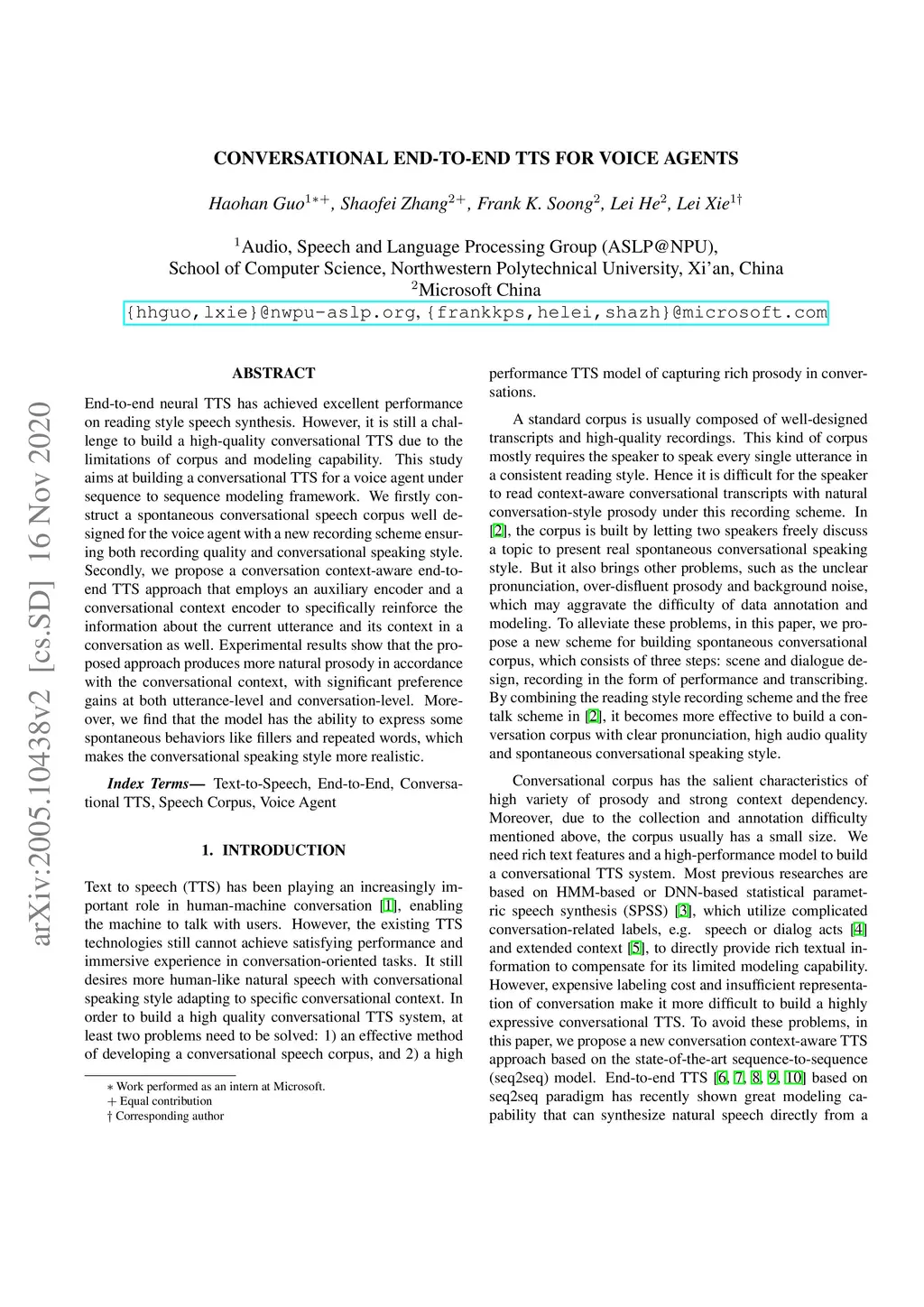 Conversational End-to-End TTS for Voice Agent