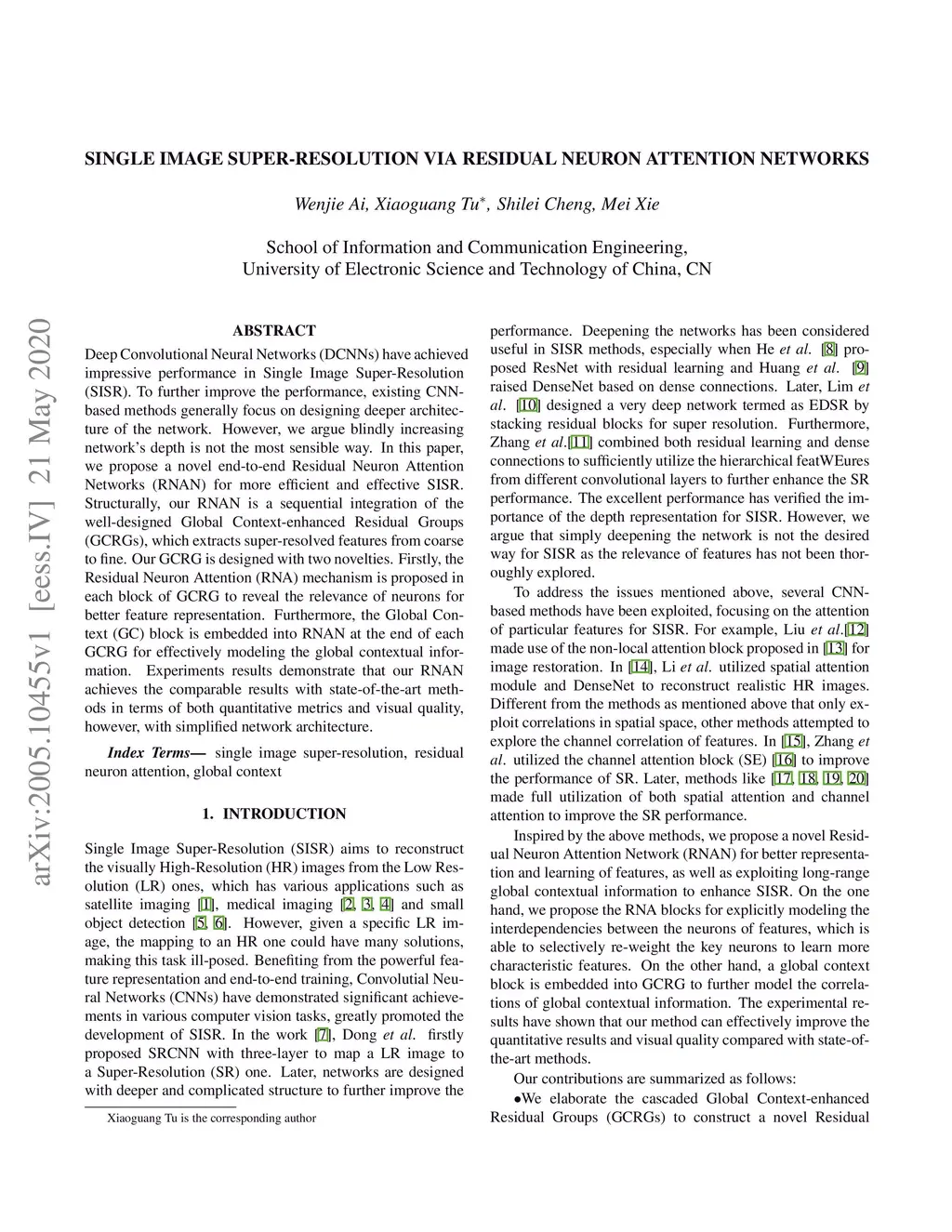 Single Image Super-Resolution via Residual Neuron Attention Networks