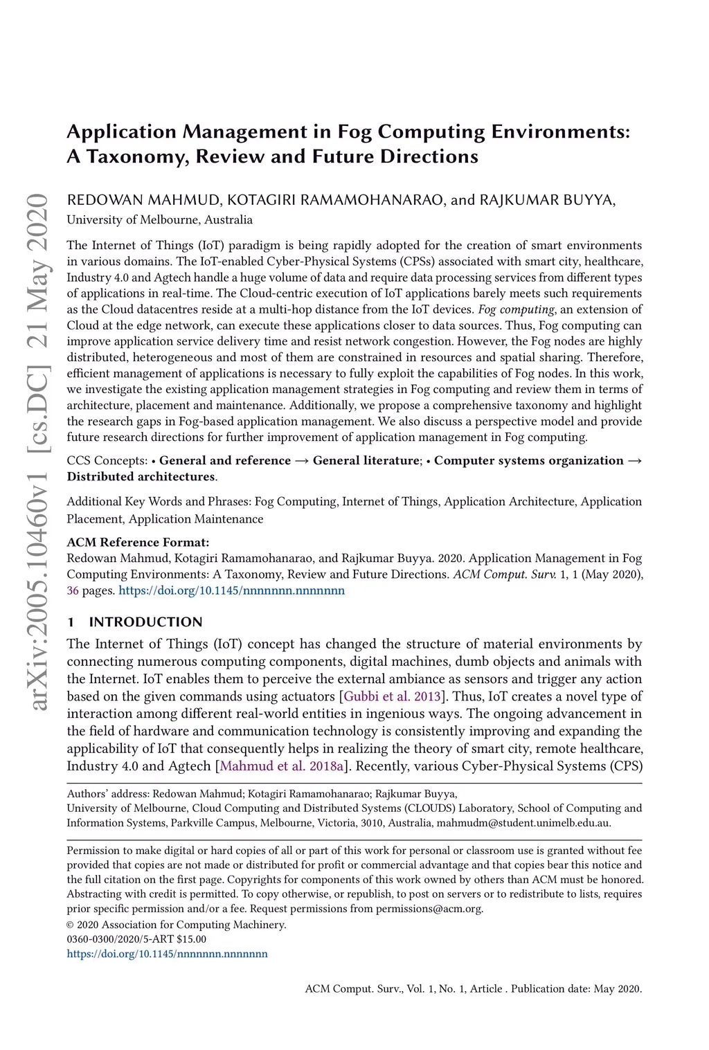 Application Management in Fog Computing Environments: A Taxonomy, Review