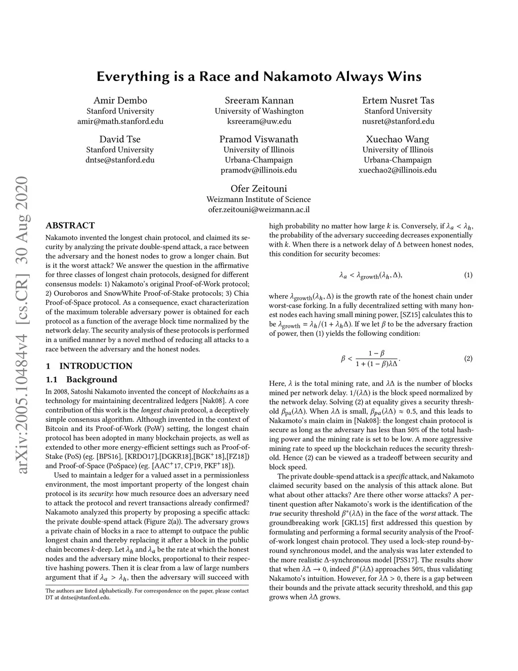 Nakamoto invented the longest chain protocol, and claimed its security by analyzing the private double-spend attack, a race between the adversary and the honest nodes to grow a longer chain. But is it the worst attack? We answer the question in the affirmative for three classes of longest chain protocols, designed for different consensus models: 1) Nakamoto's original Proof-of-Work protocol; 2) Ouroboros and SnowWhite Proof-of-Stake protocols; 3) Chia Proof-of-Space protocol. As a consequence, exact characterization of the maximum tolerable adversary power is obtained for each protocol as a function of the average block time normalized by the network delay. The security analysis of these protocols is performed in a unified manner by a novel method of reducing all attacks to a race between the adversary and the honest nodes.