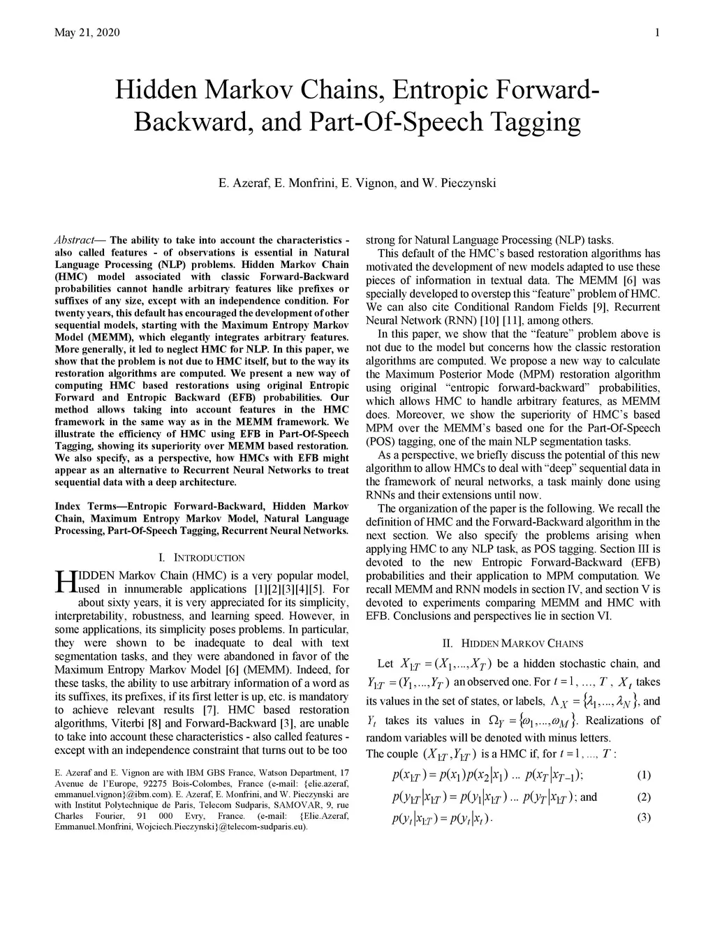Hidden Markov Chains, Entropic Forward-Backward, and Part-Of-Speech