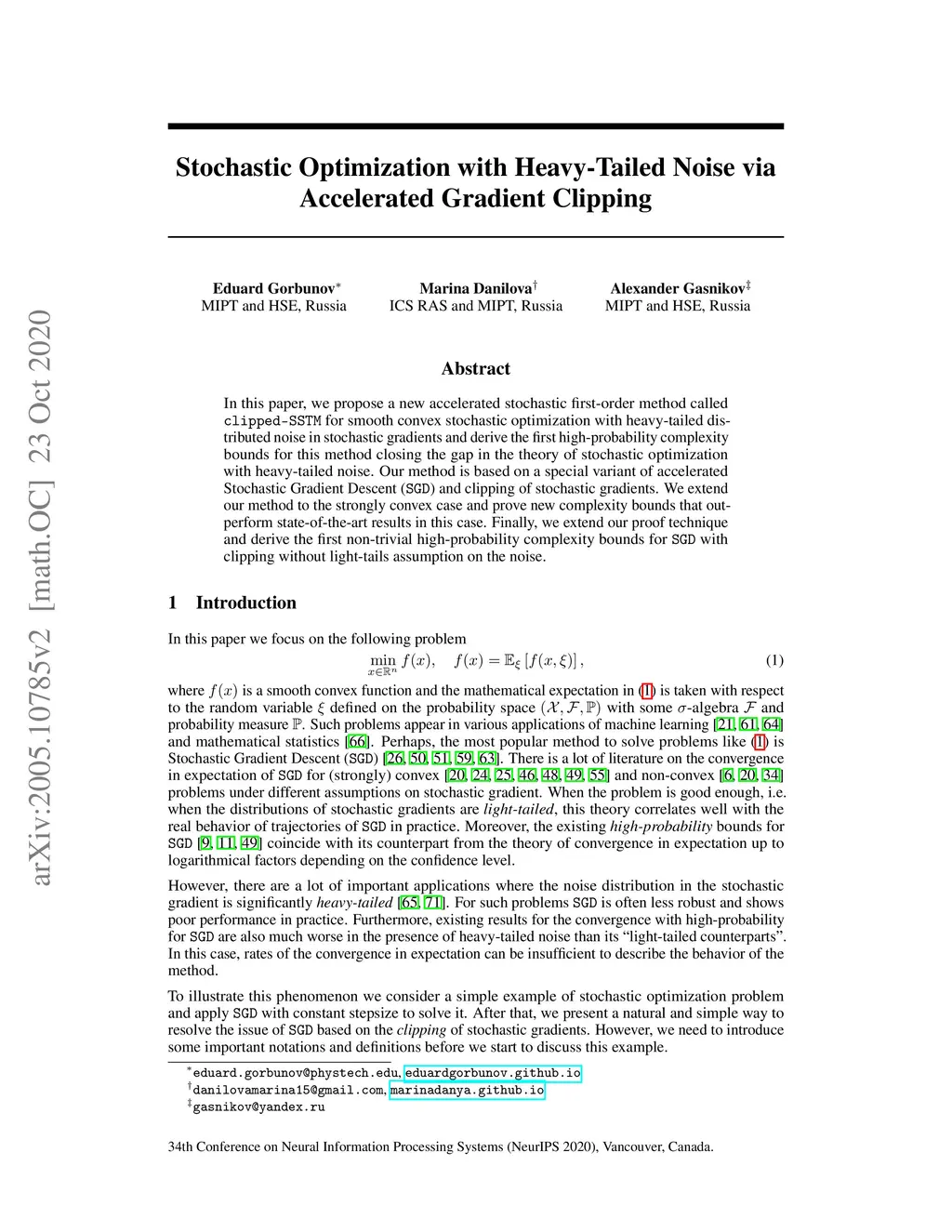 In this paper, we propose a new accelerated stochastic first-order method called clipped-SSTM for smooth convex stochastic optimization with heavy-tailed distributed noise in stochastic gradients and derive the first high-probability complexity bounds for this method closing the gap in the theory of stochastic optimization with heavy-tailed noise. Our method is based on a special variant of accelerated Stochastic Gradient Descent (SGD) and clipping of stochastic gradients. We extend our method to the strongly convex case and prove new complexity bounds that outperform state-of-the-art results in this case. Finally, we extend our proof technique and derive the first non-trivial high-probability complexity bounds for SGD with clipping without light-tails assumption on the noise.