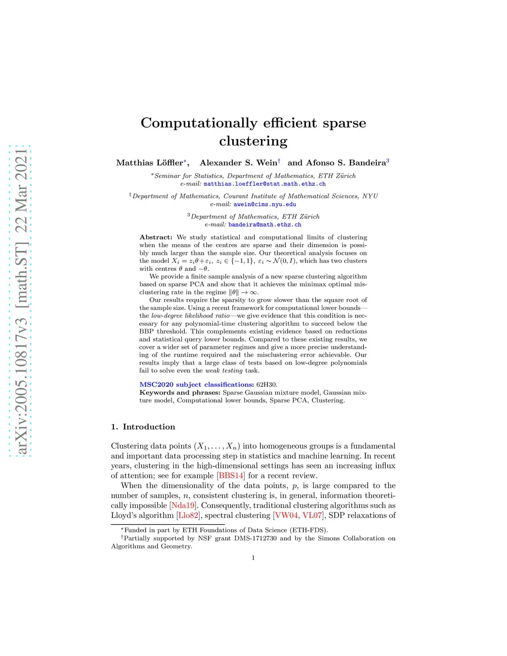 Computationally efficient sparse clustering