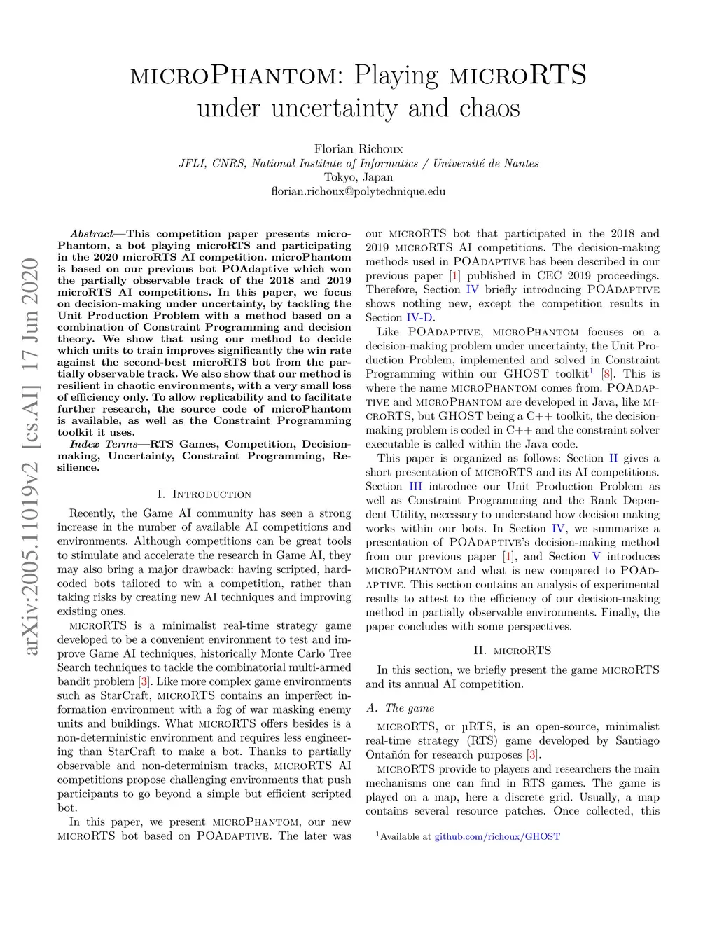 microPhantom: Playing microRTS under uncertainty and chaos