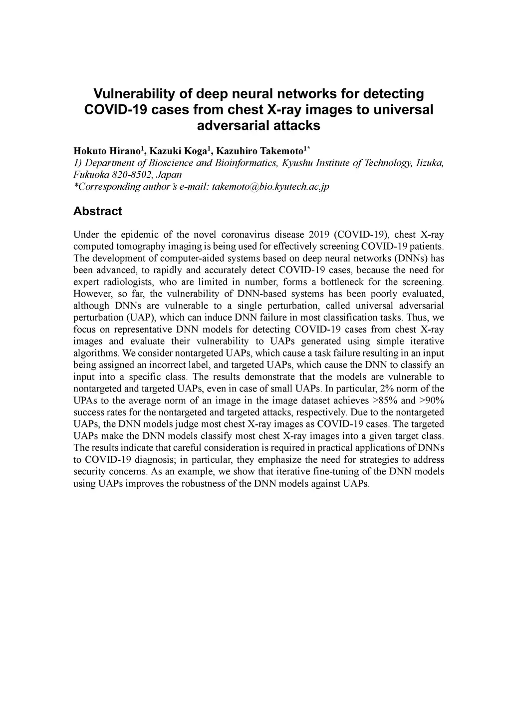 Vulnerability of deep neural networks for detecting COVID-19 cases from