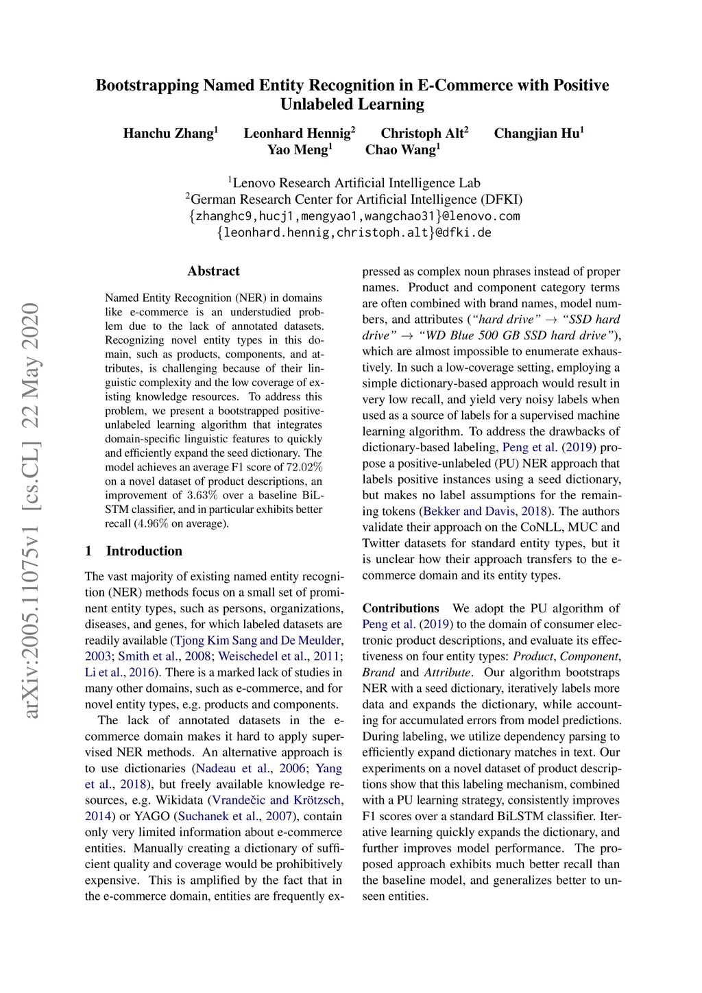 Bootstrapping Named Entity Recognition in E-Commerce with Positive