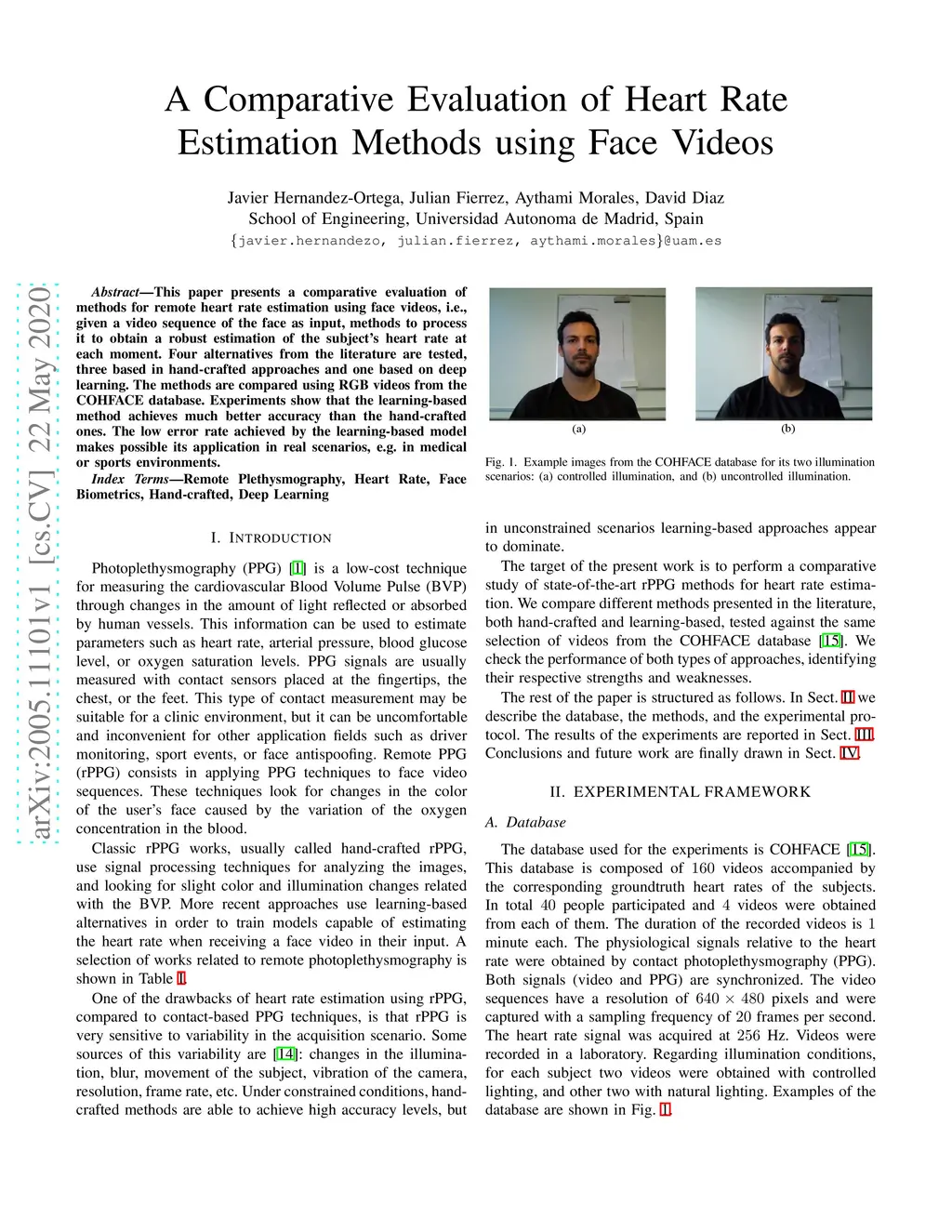 A Comparative Evaluation of Heart Rate Estimation Methods using Face