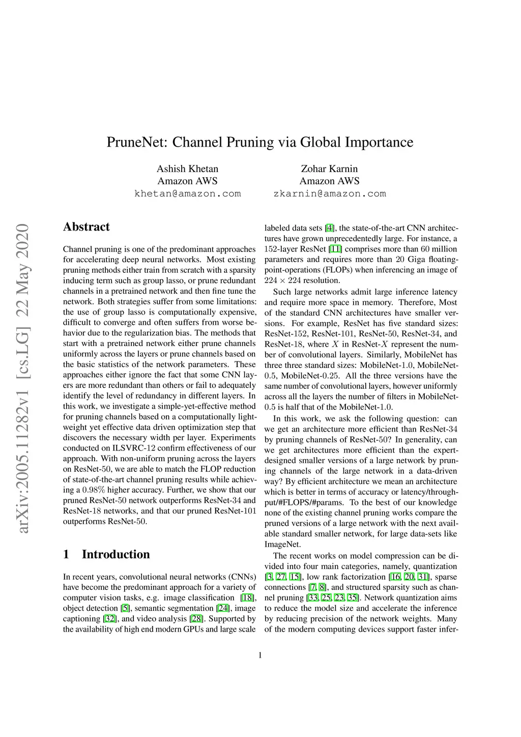 PruneNet: Channel Pruning via Global Importance