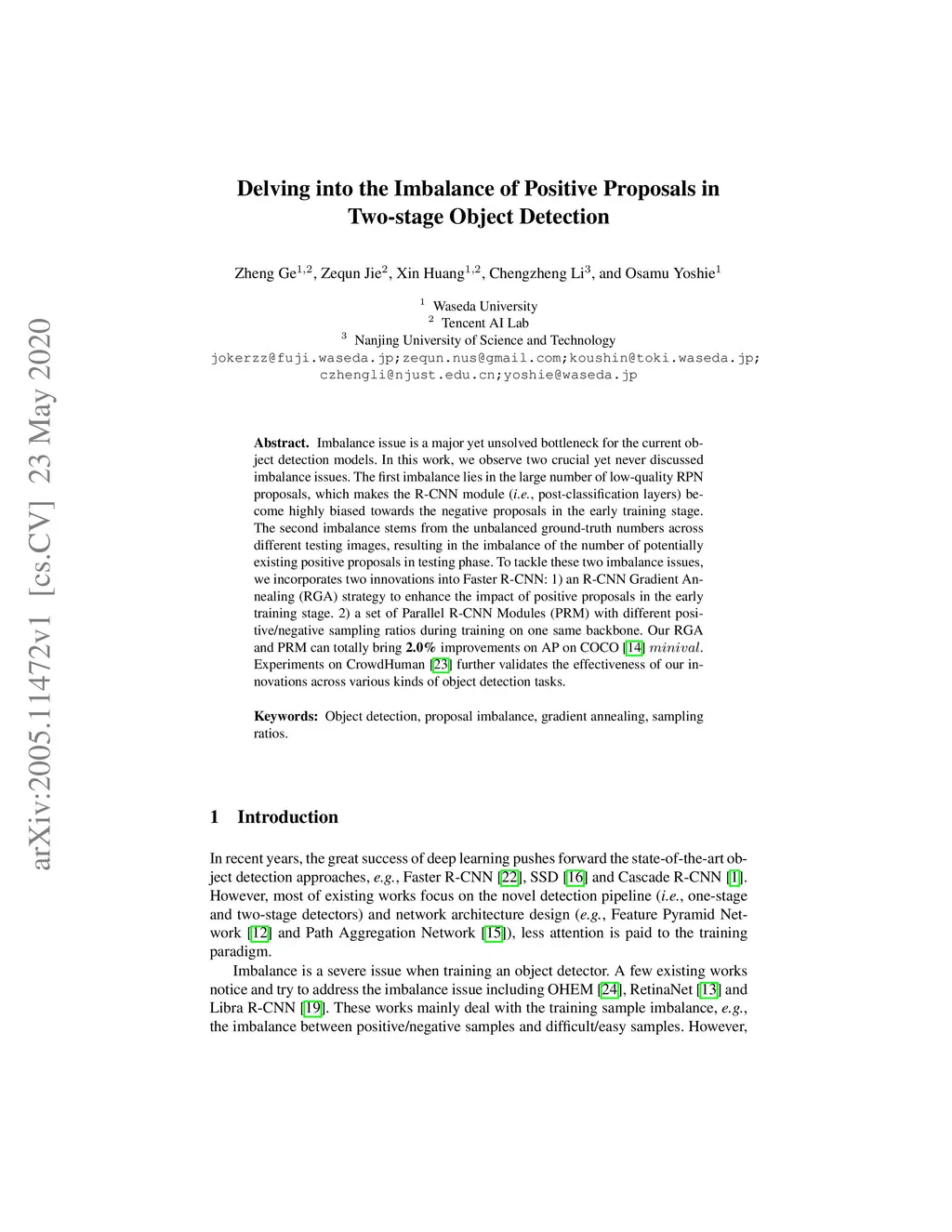 Imbalance issue is a major yet unsolved bottleneck for the current object detection models. In this work, we observe two crucial yet never discussed imbalance issues. The first imbalance lies in the large number of low-quality RPN proposals, which makes the R-CNN module (i.e., post-classification layers) become highly biased towards the negative proposals in the early training stage. The second imbalance stems from the unbalanced ground-truth numbers across different testing images, resulting in the imbalance of the number of potentially existing positive proposals in testing phase. To tackle these two imbalance issues, we incorporates two innovations into Faster R-CNN: 1) an R-CNN Gradient Annealing (RGA) strategy to enhance the impact of positive proposals in the early training stage. 2) a set of Parallel R-CNN Modules (PRM) with different positive/negative sampling ratios during training on one same backbone. Our RGA and PRM can totally bring 2.0% improvements on AP on COCO minival. Experiments on CrowdHuman further validates the effectiveness of our innovations across various kinds of object detection tasks.